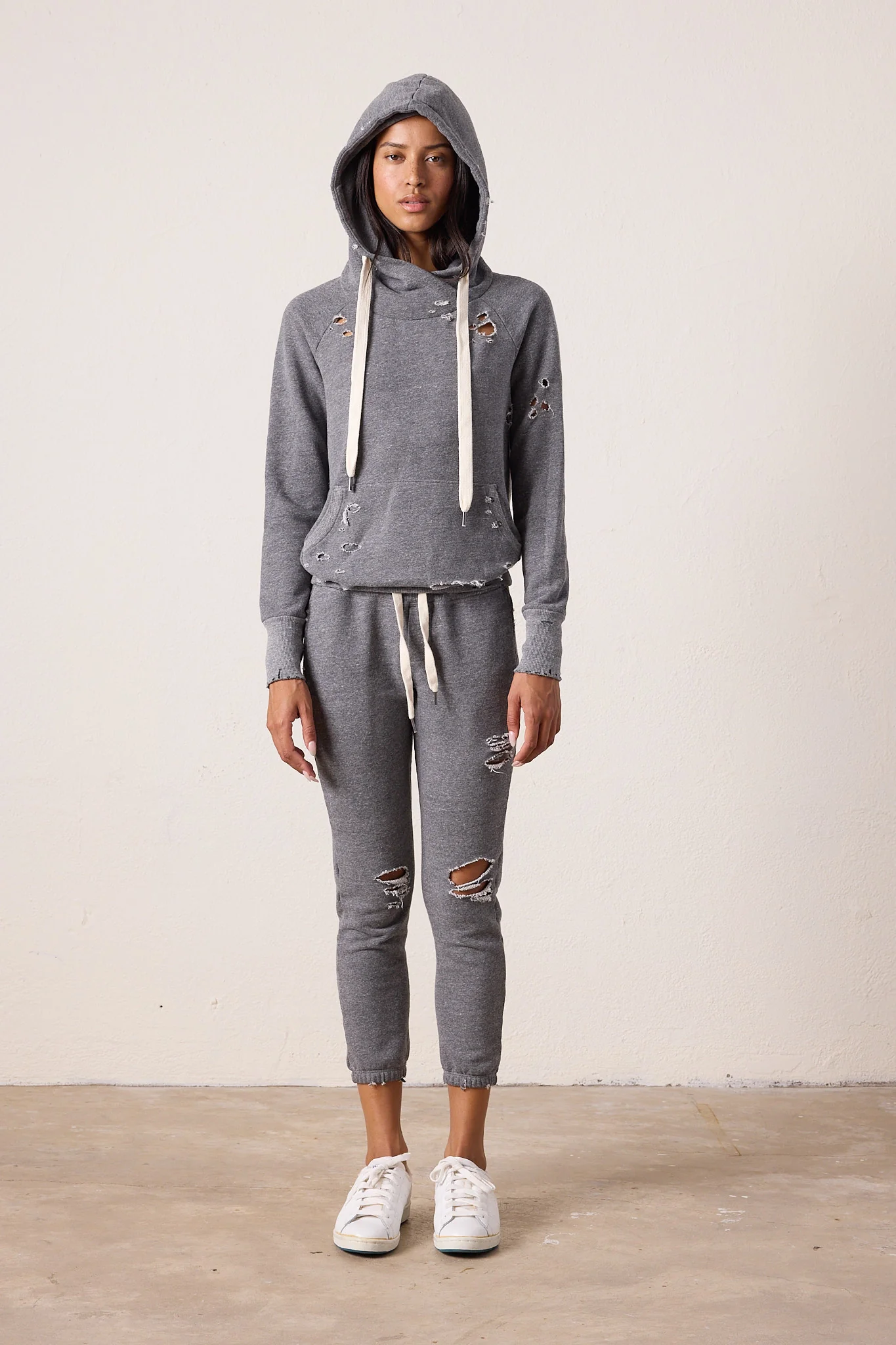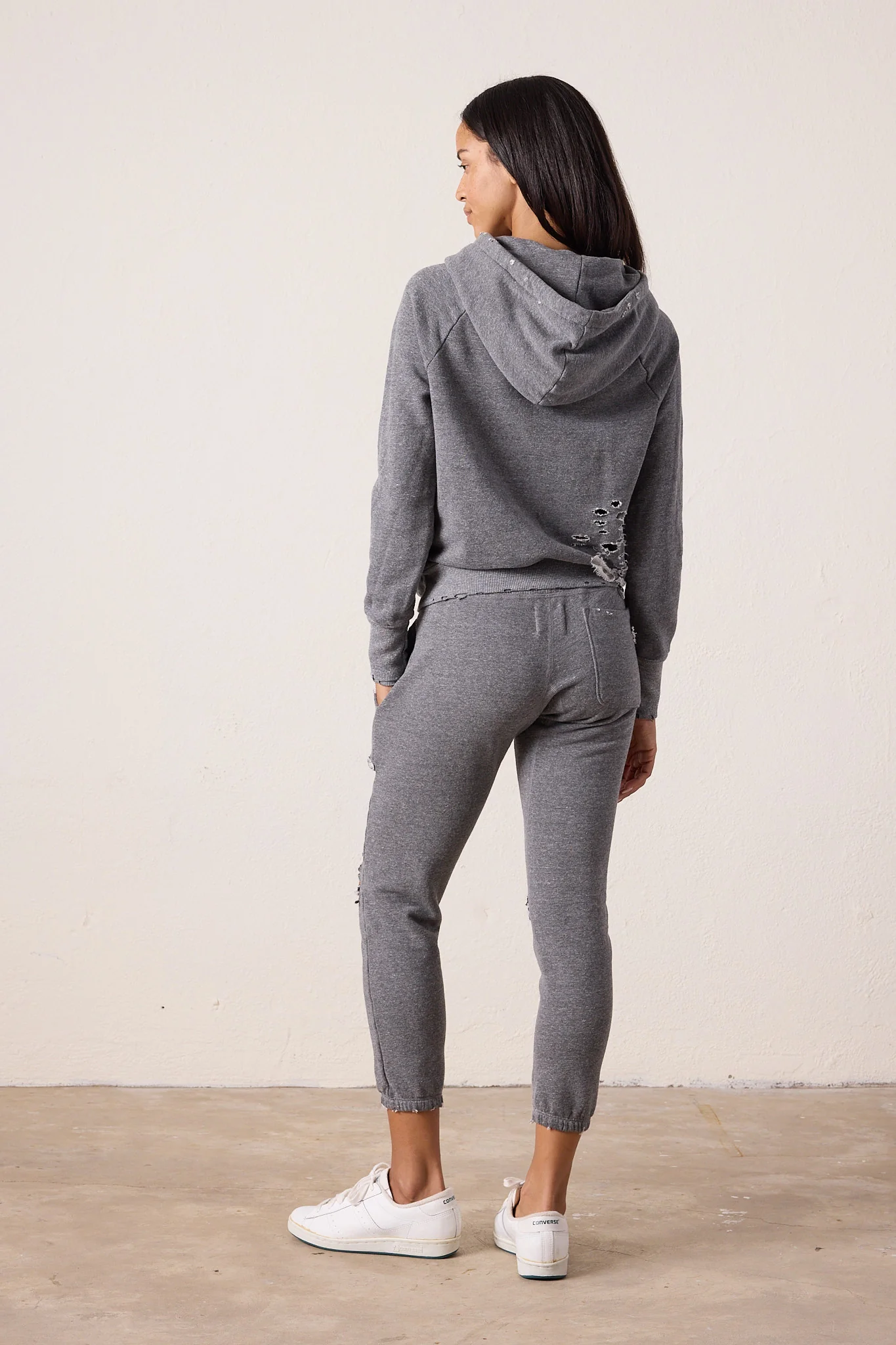 NSF Sayde Slim Destroyed Melange Terry Sweatpant - Charcoal Heather Gray