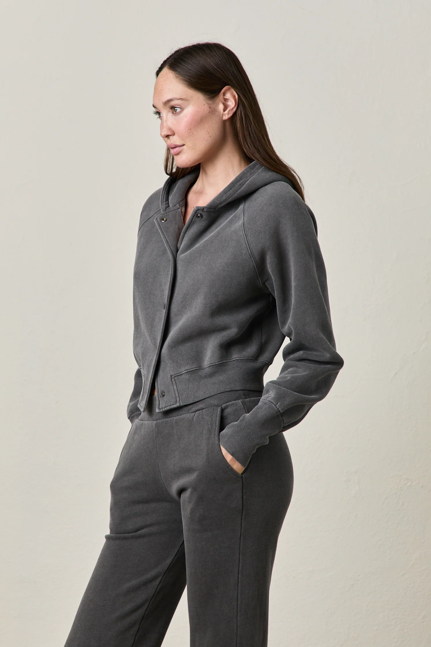 LISSE FITTED LOOP TERRY HOODY / STEEL GREY