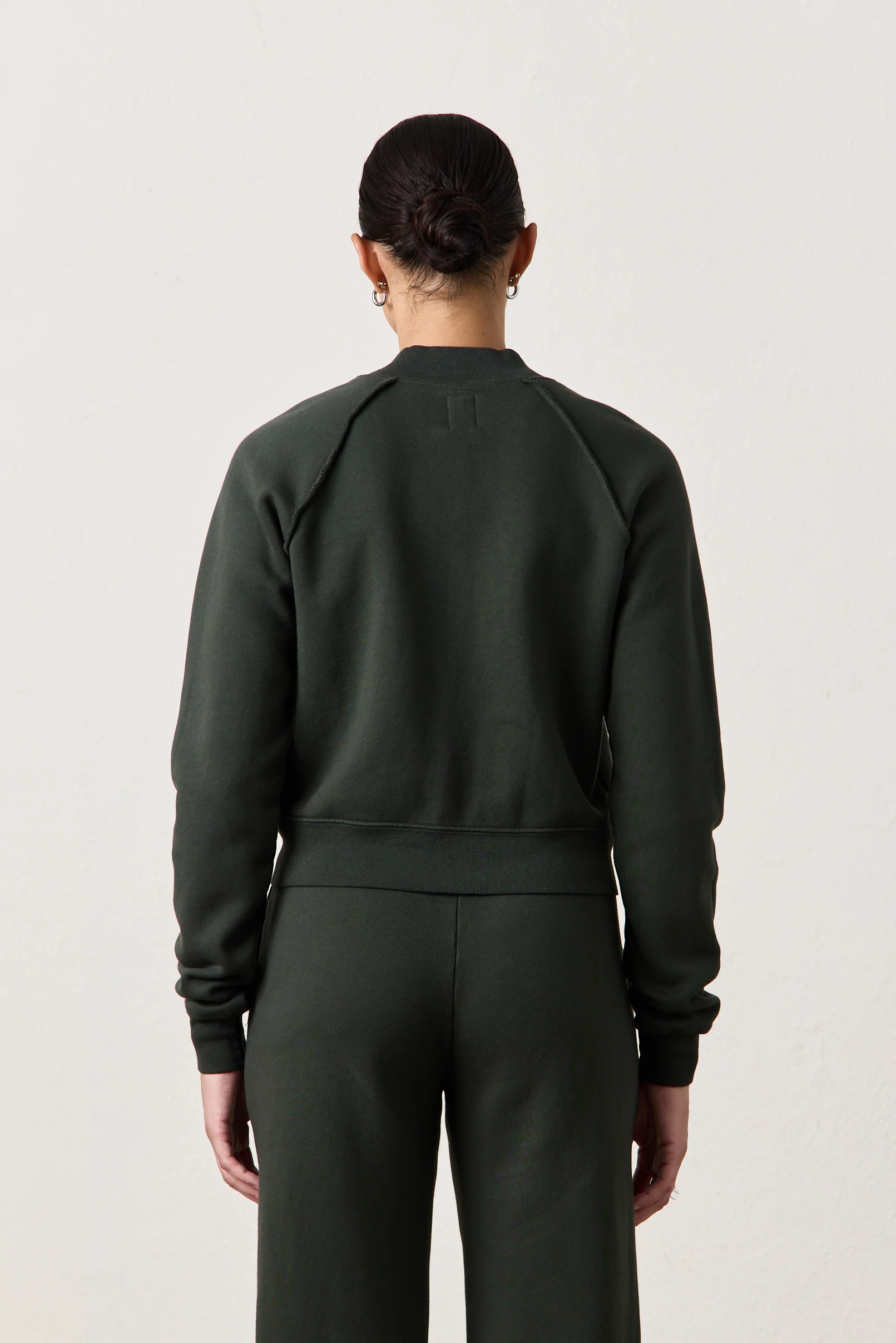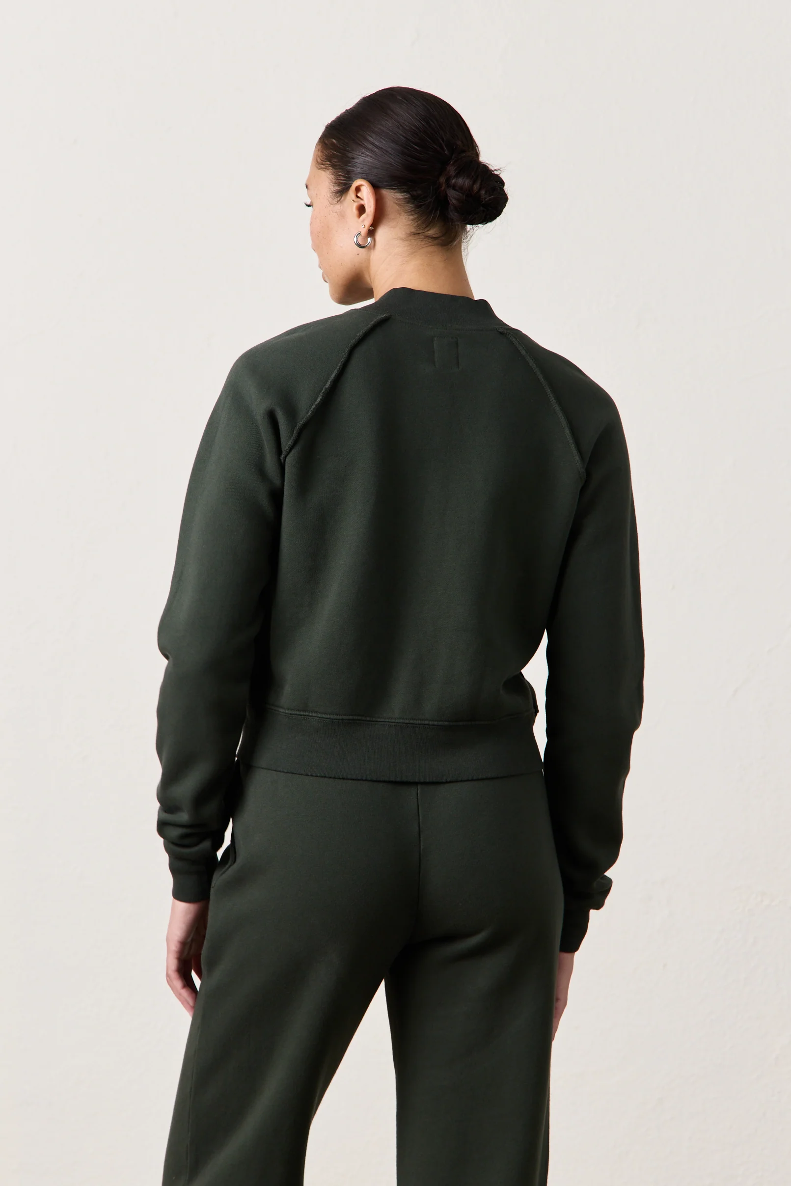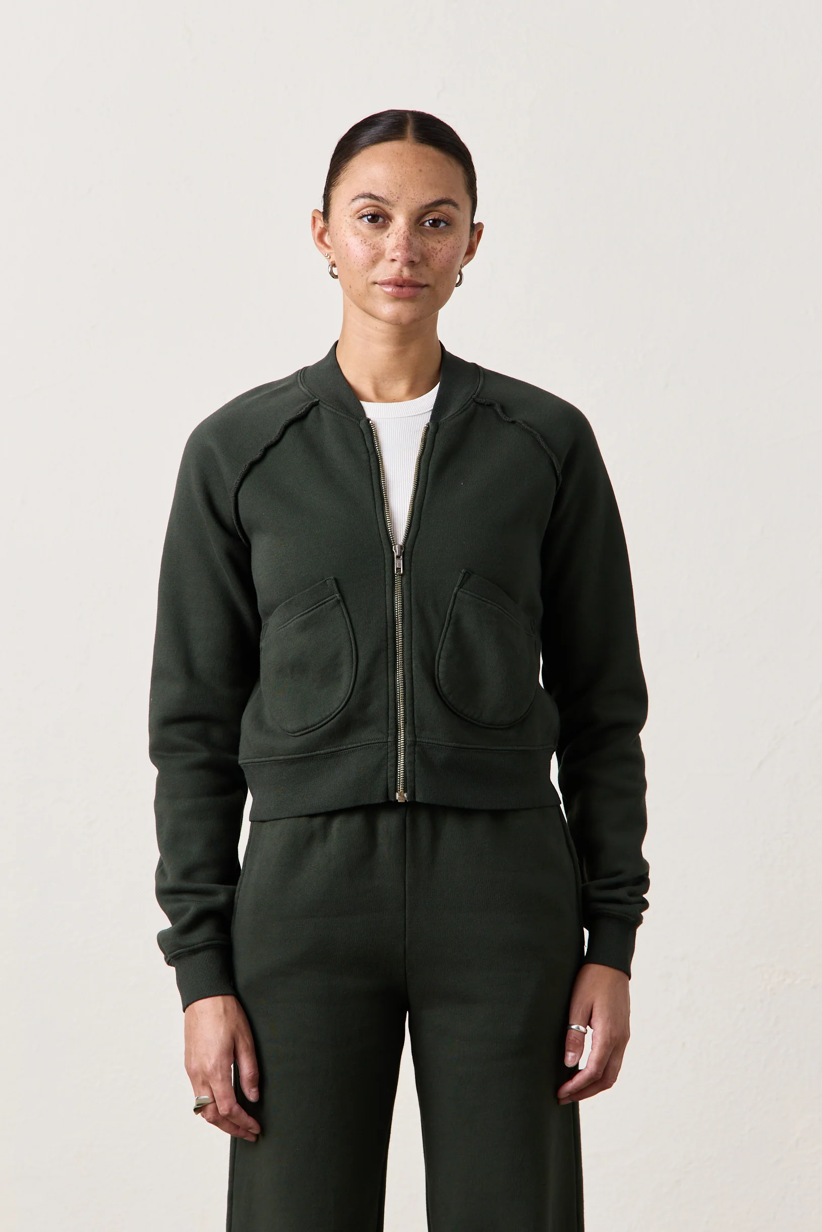 FOX ZIP FRONT COZY FLEECE BOMBER / DARK OLIVE