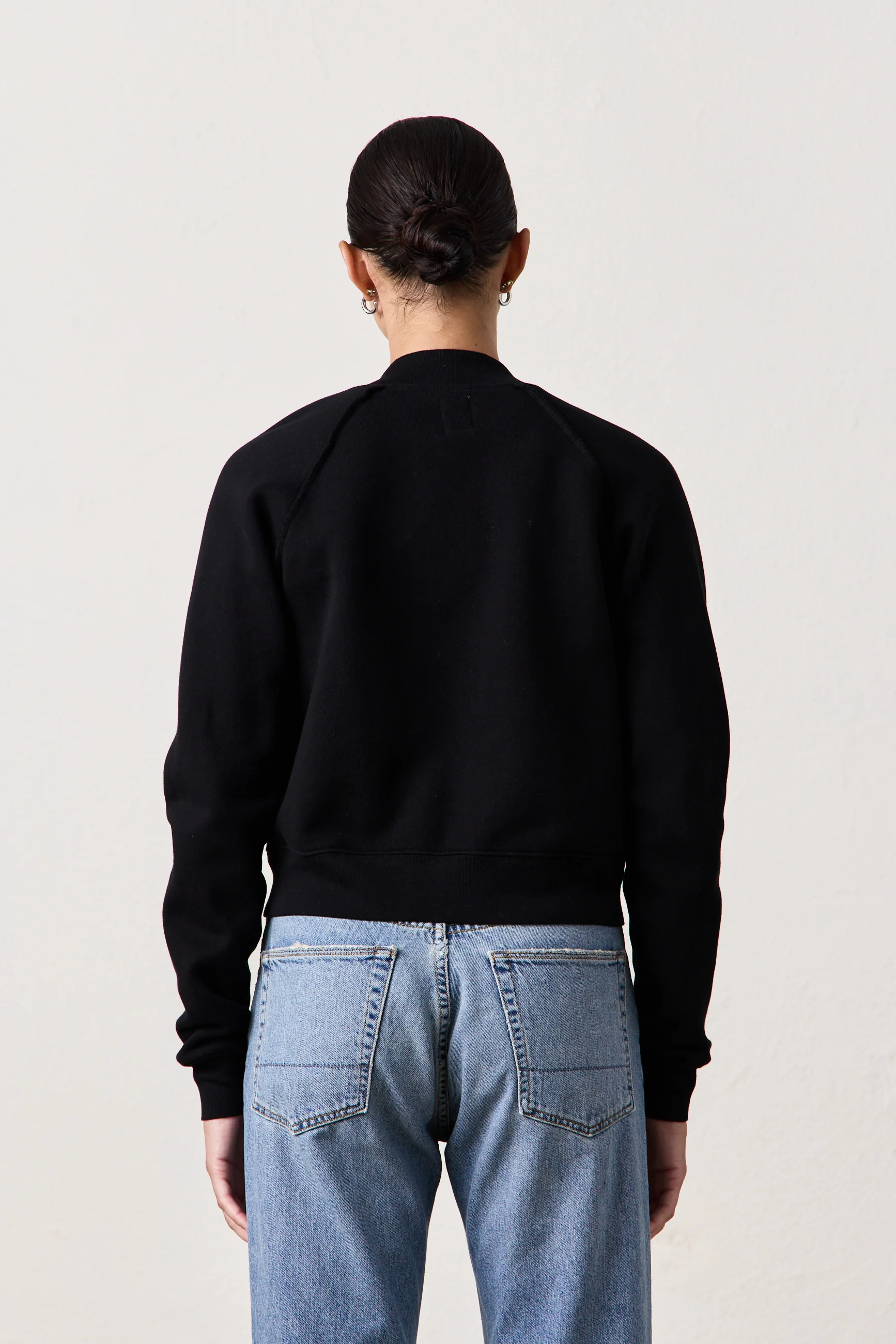 FOX ZIP FRONT COZY FLEECE BOMBER / BLACK