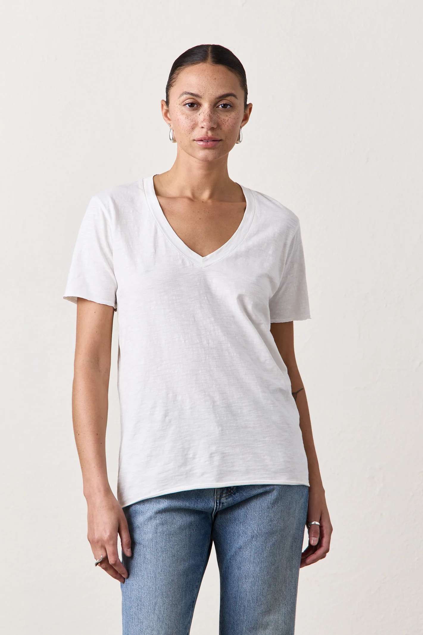 CORA RELAXED SLUB JERSEY V-NECK TEE / SOFT WHITE
