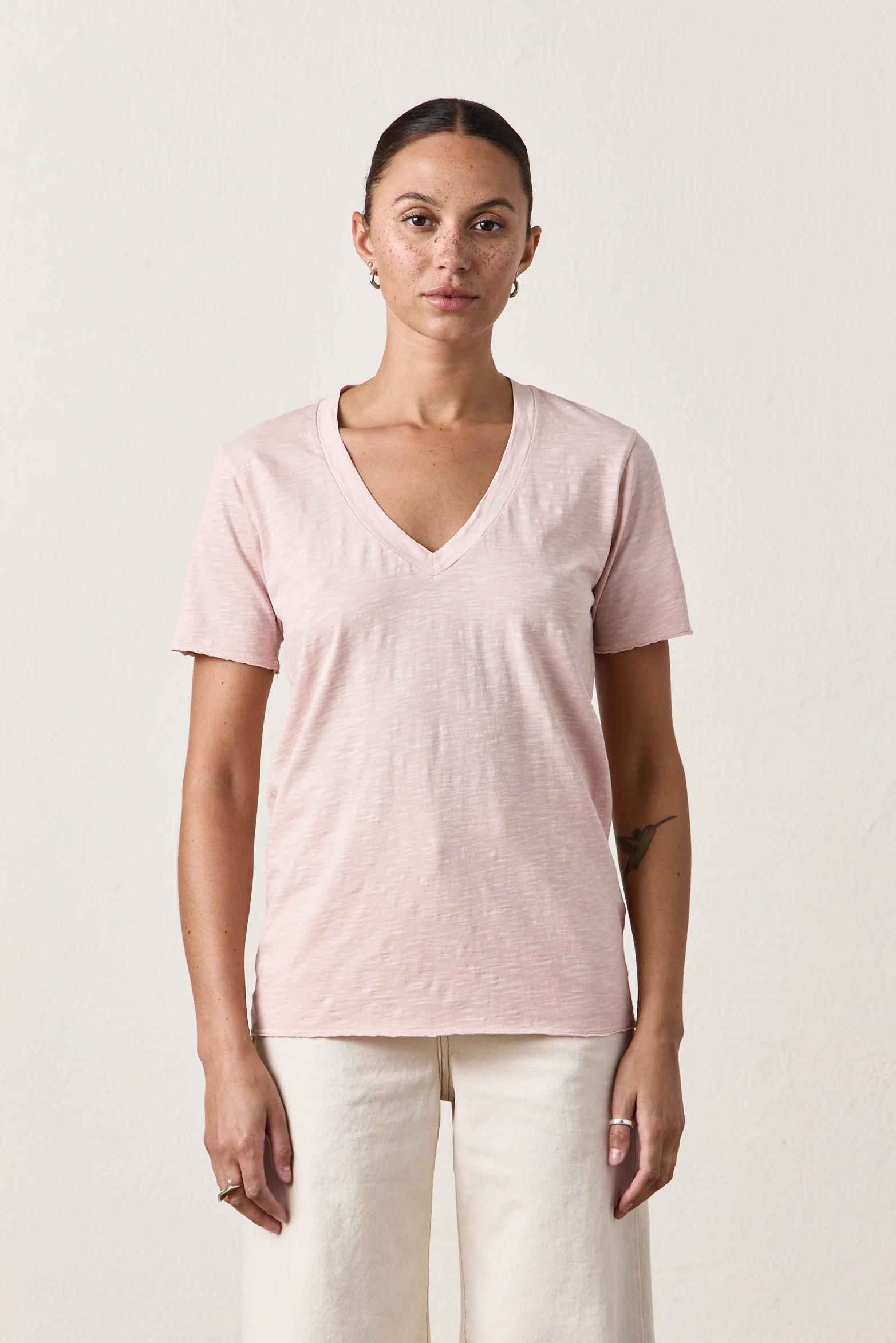 CORA RELAXED SLUB JERSEY V-NECK TEE / ROSY
