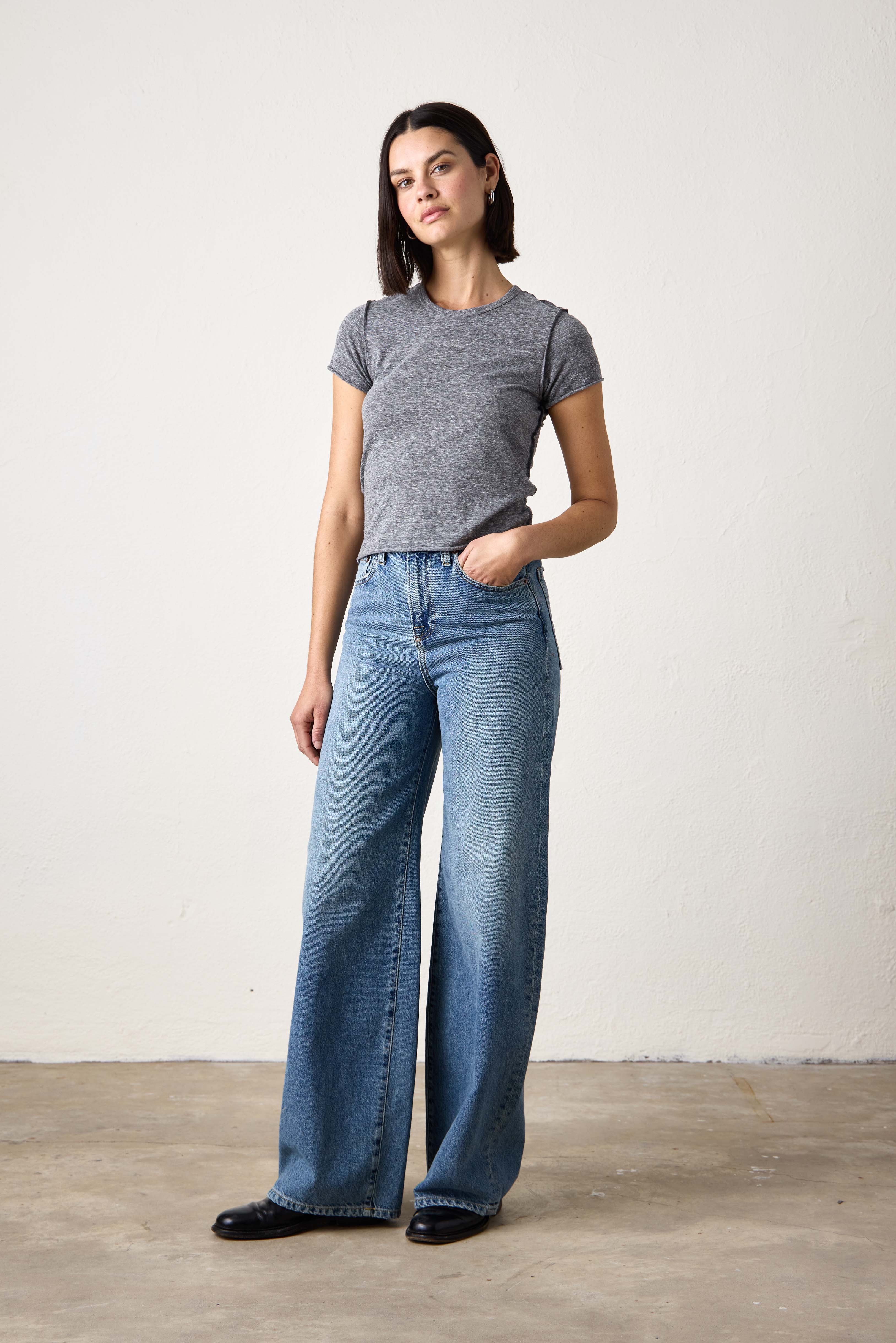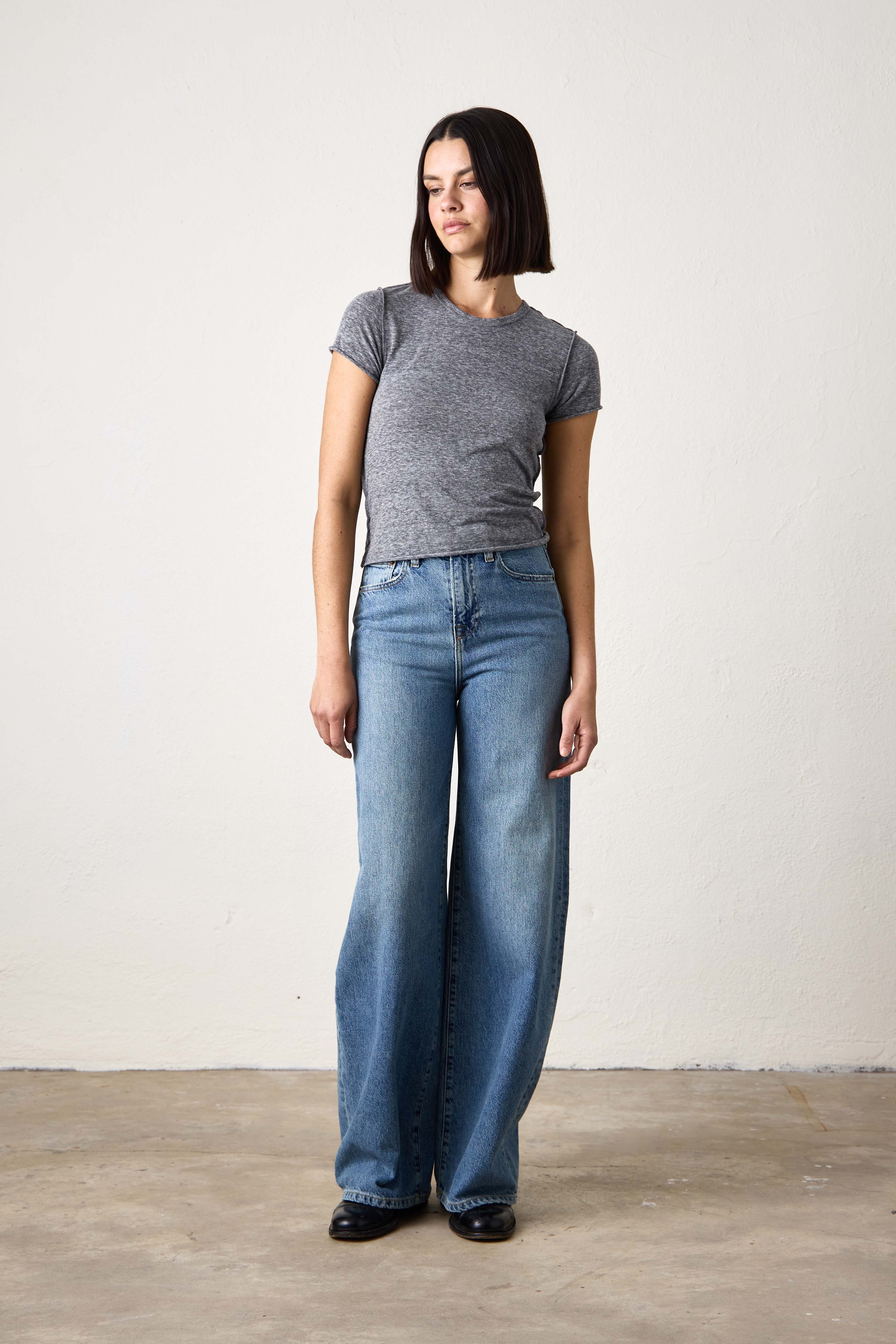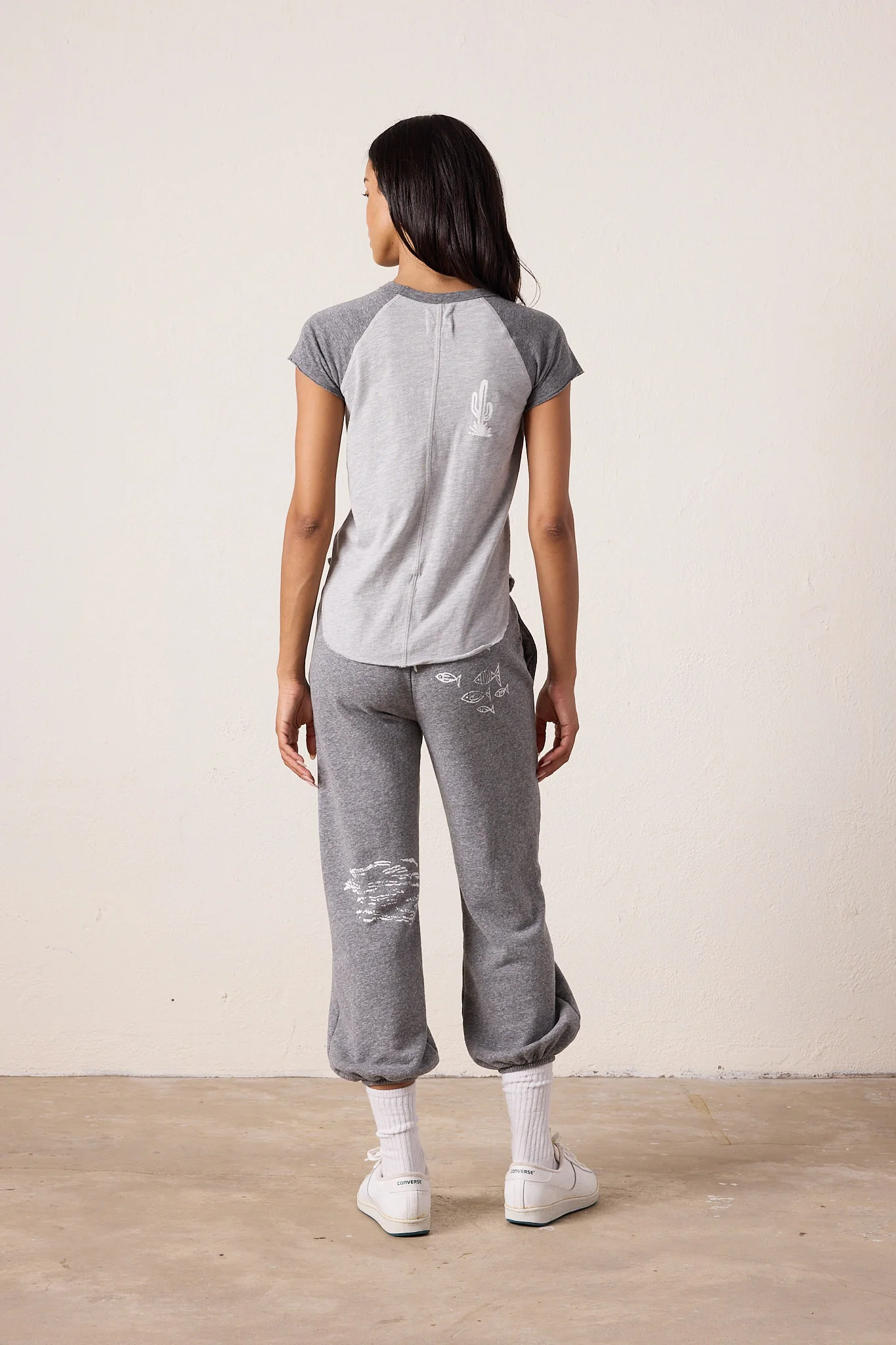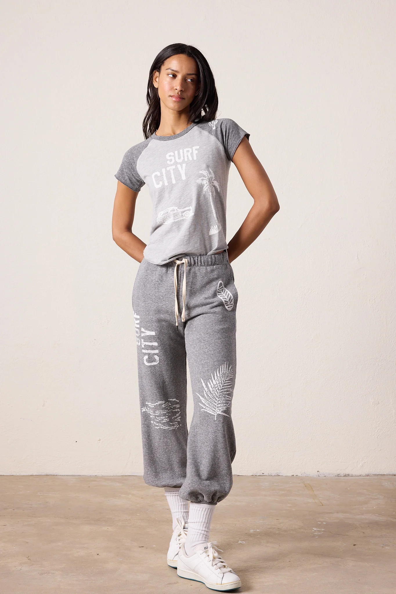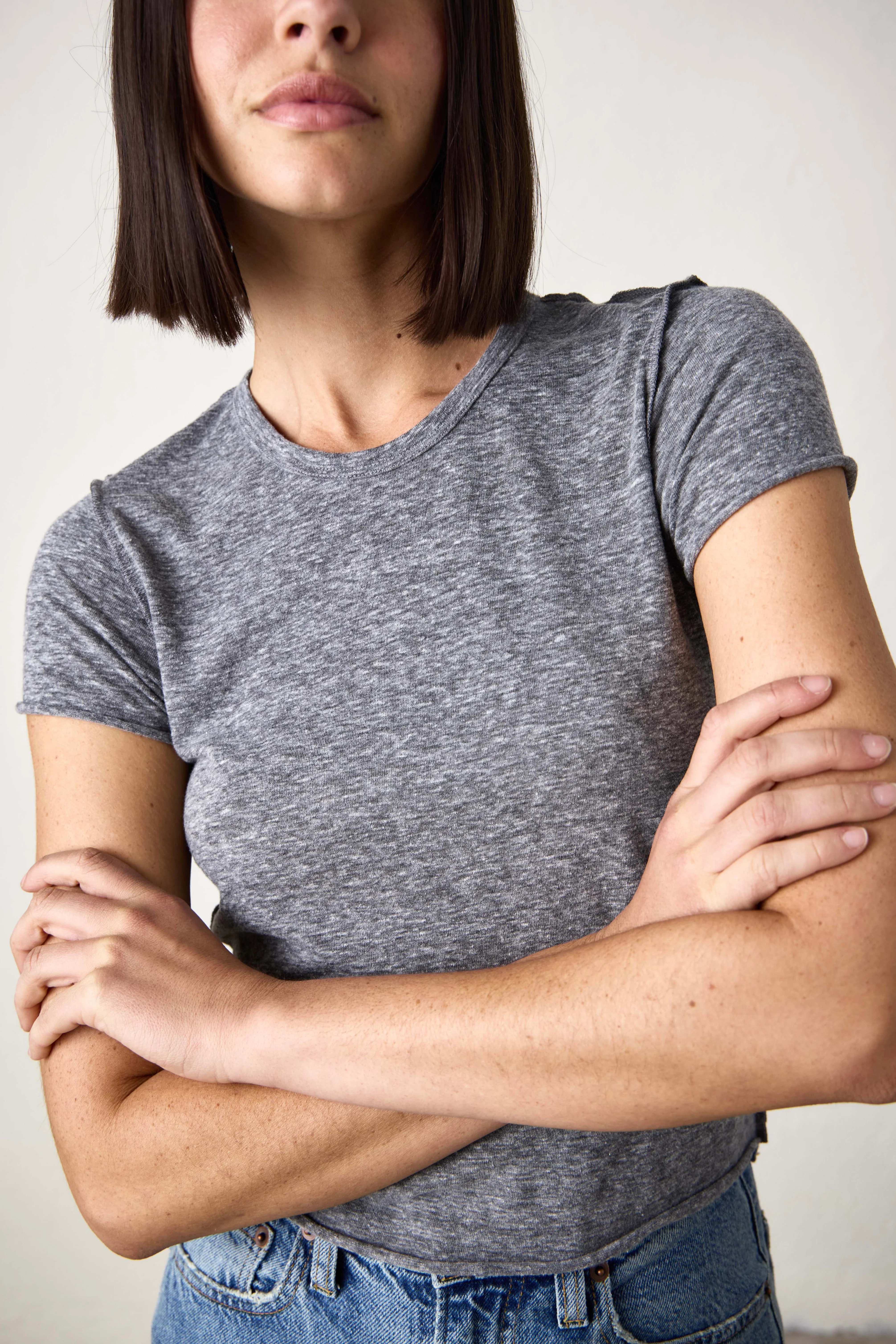 NSF Tara Melange Jersey Surf City Mini Crew Tee - Charcoal Heather Gray