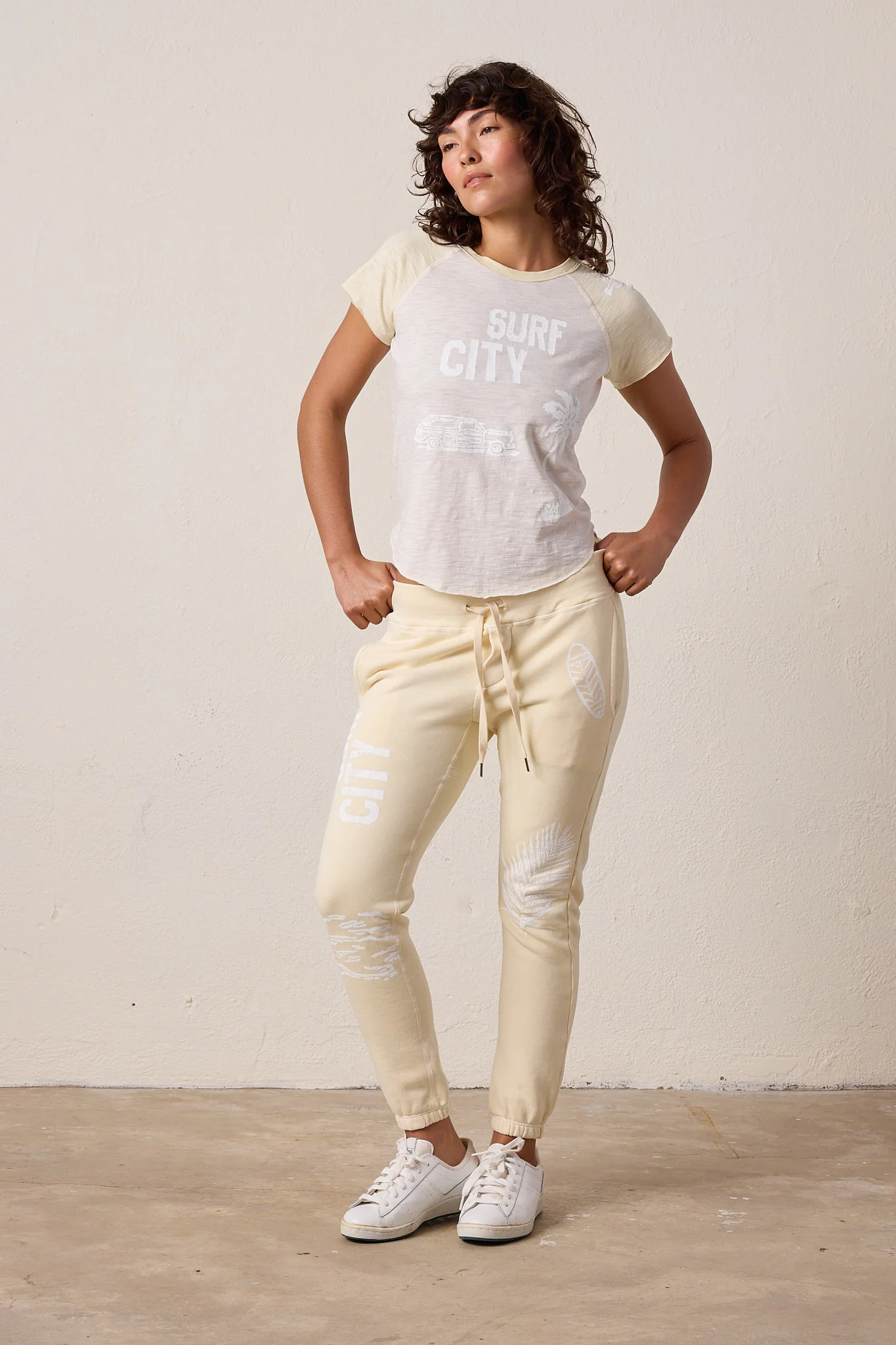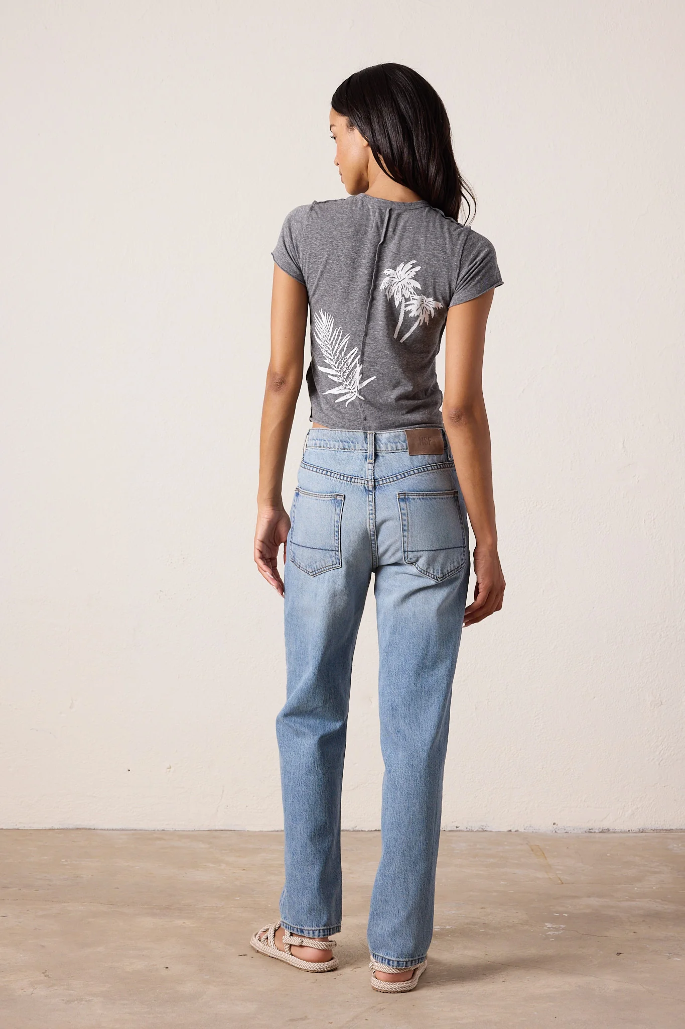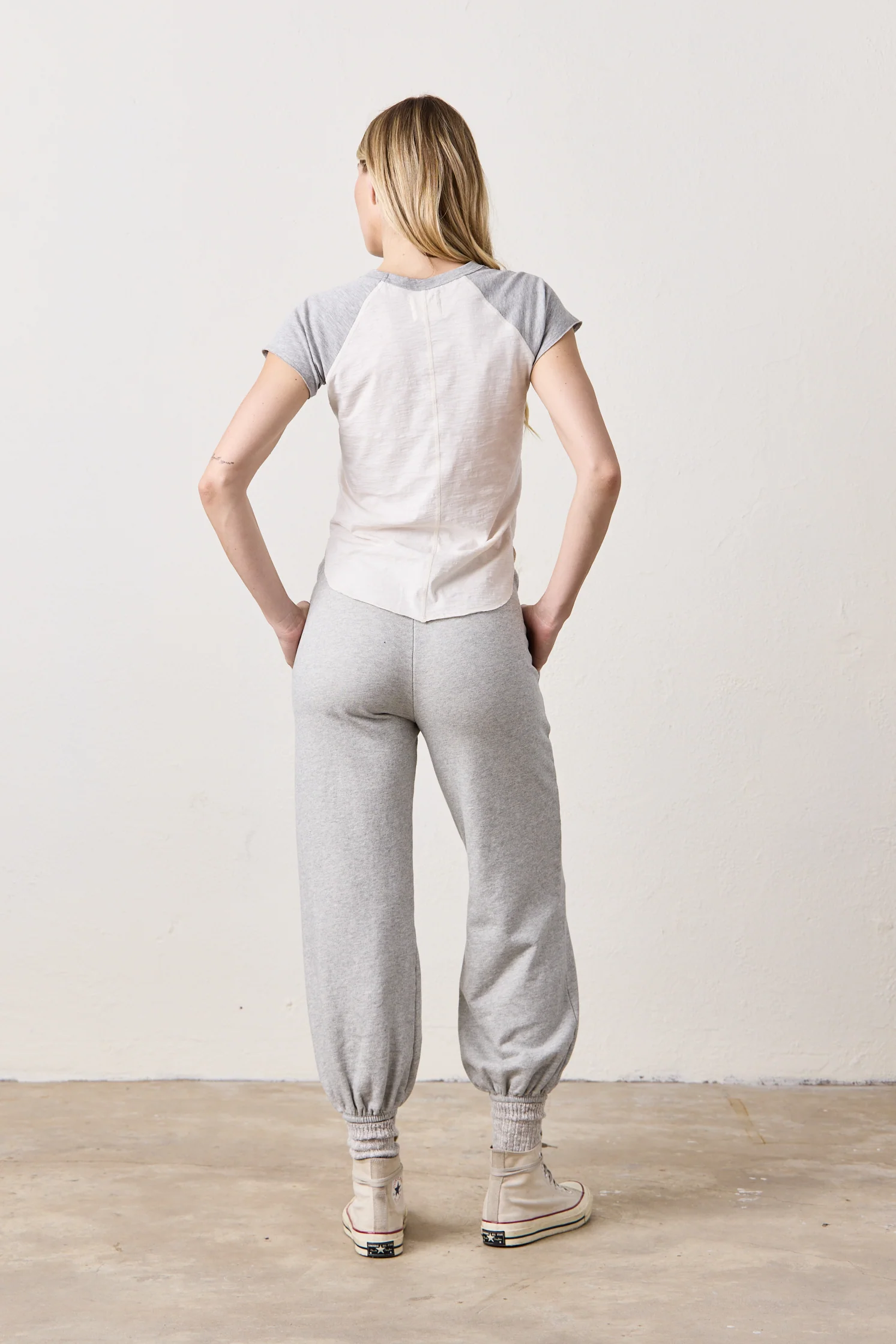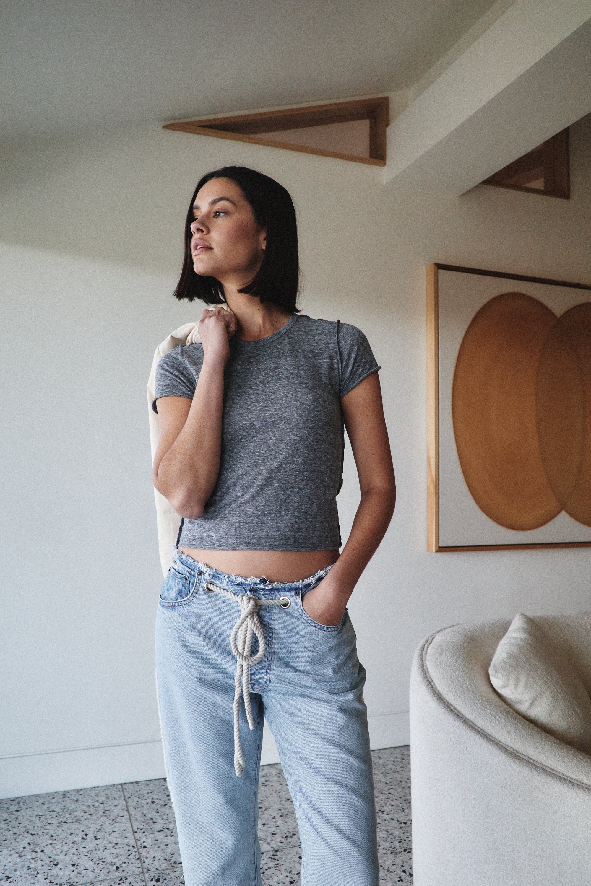 NSF Tara Melange Jersey Surf City Mini Crew Tee - Charcoal Heather Gray