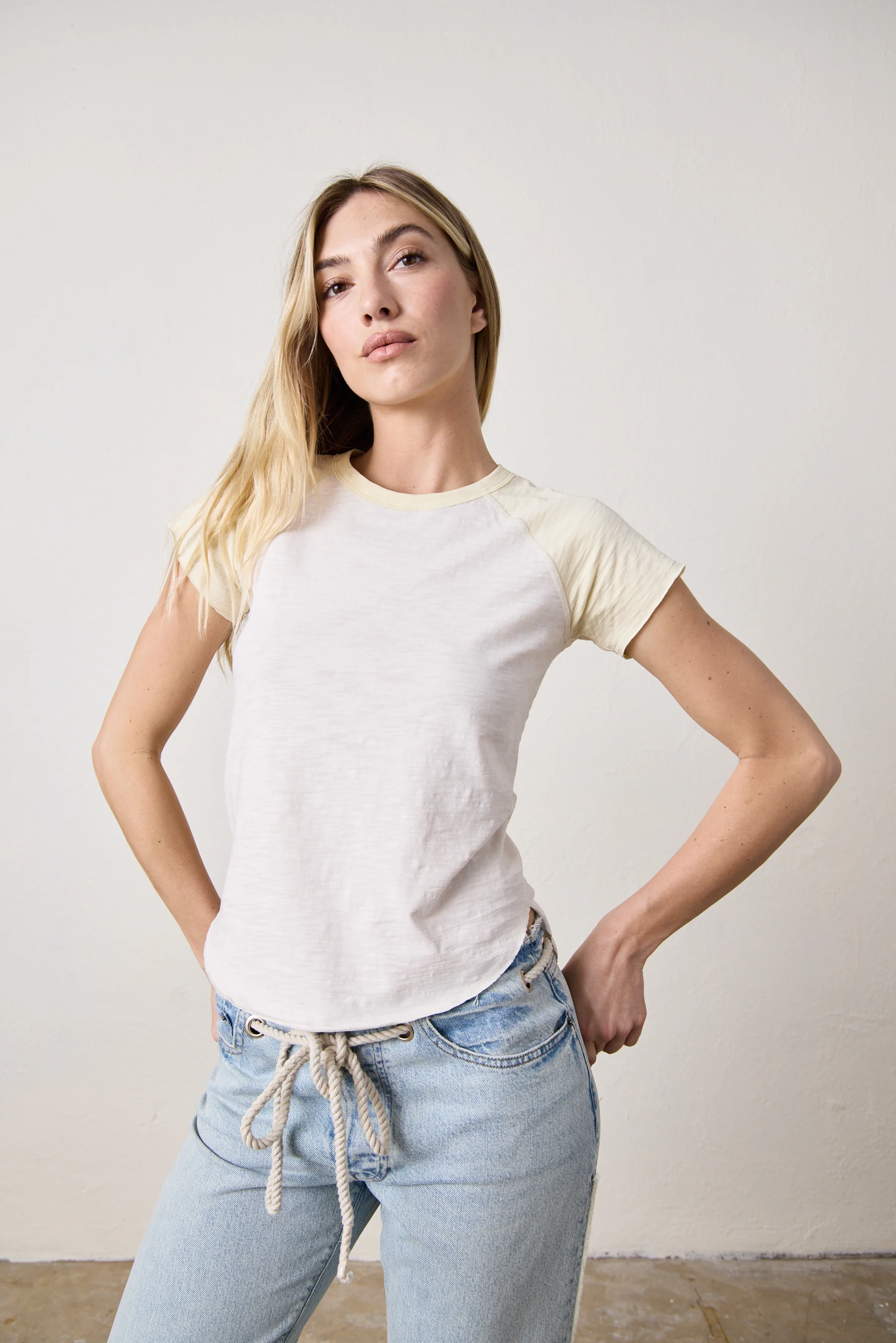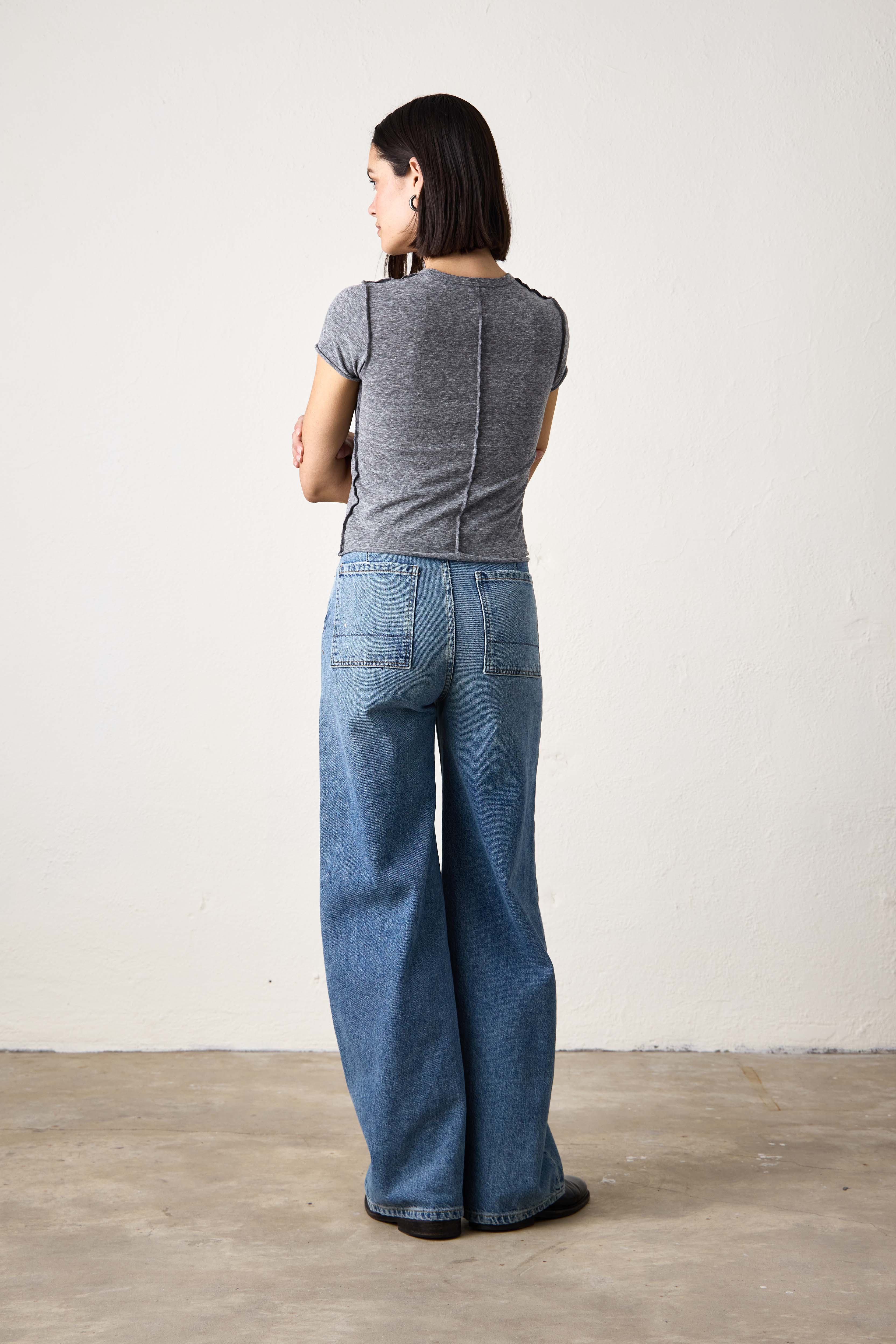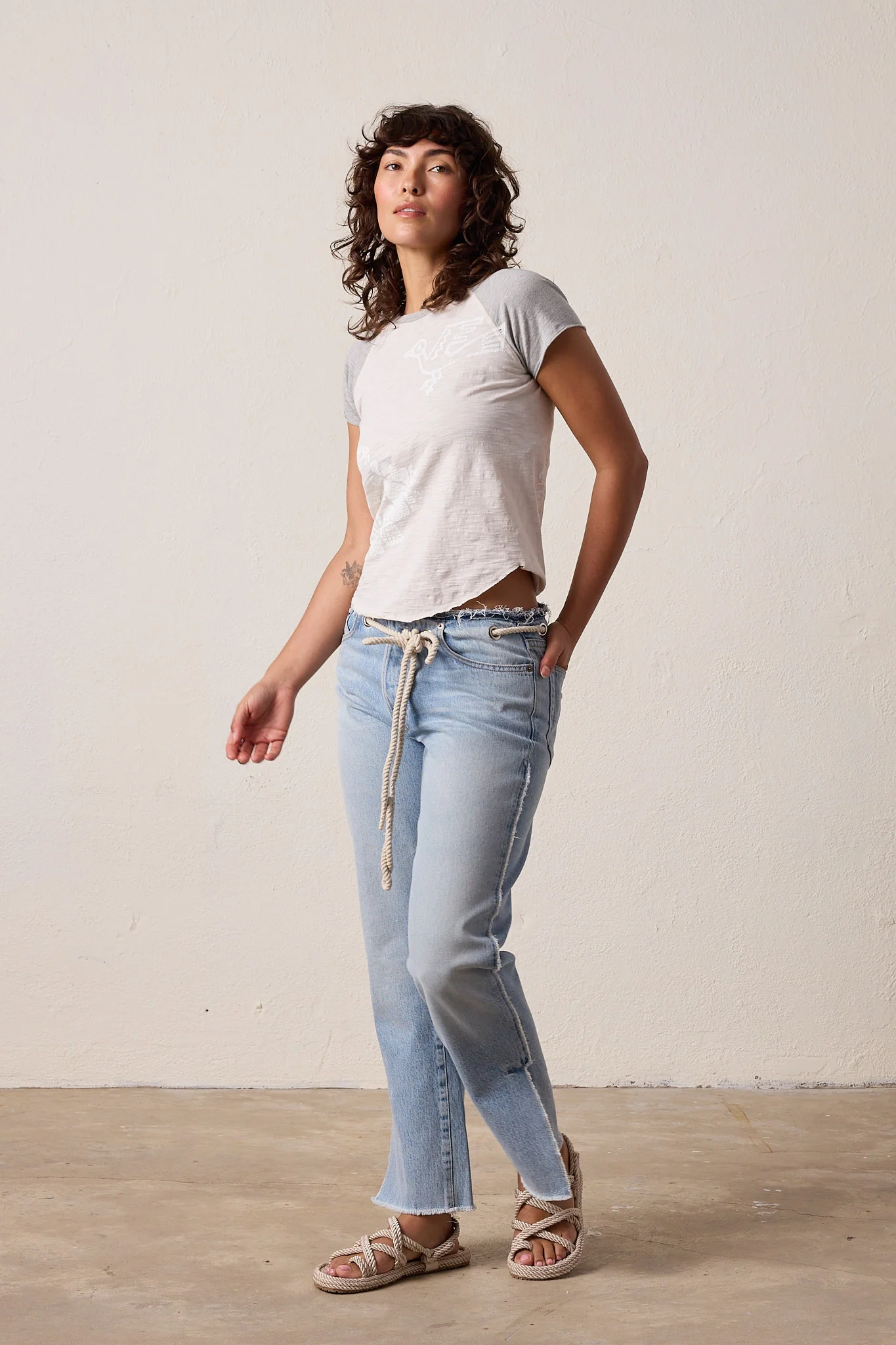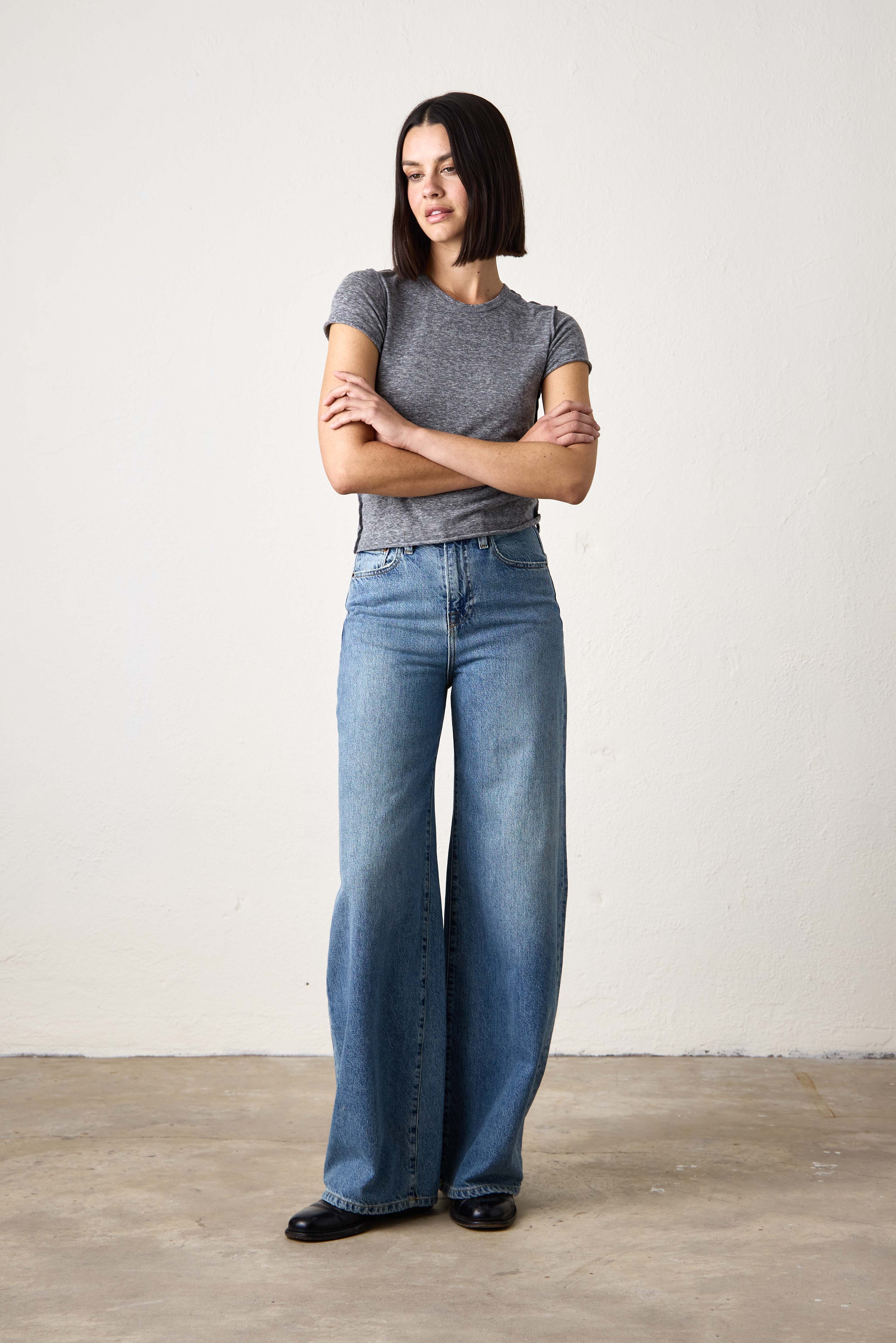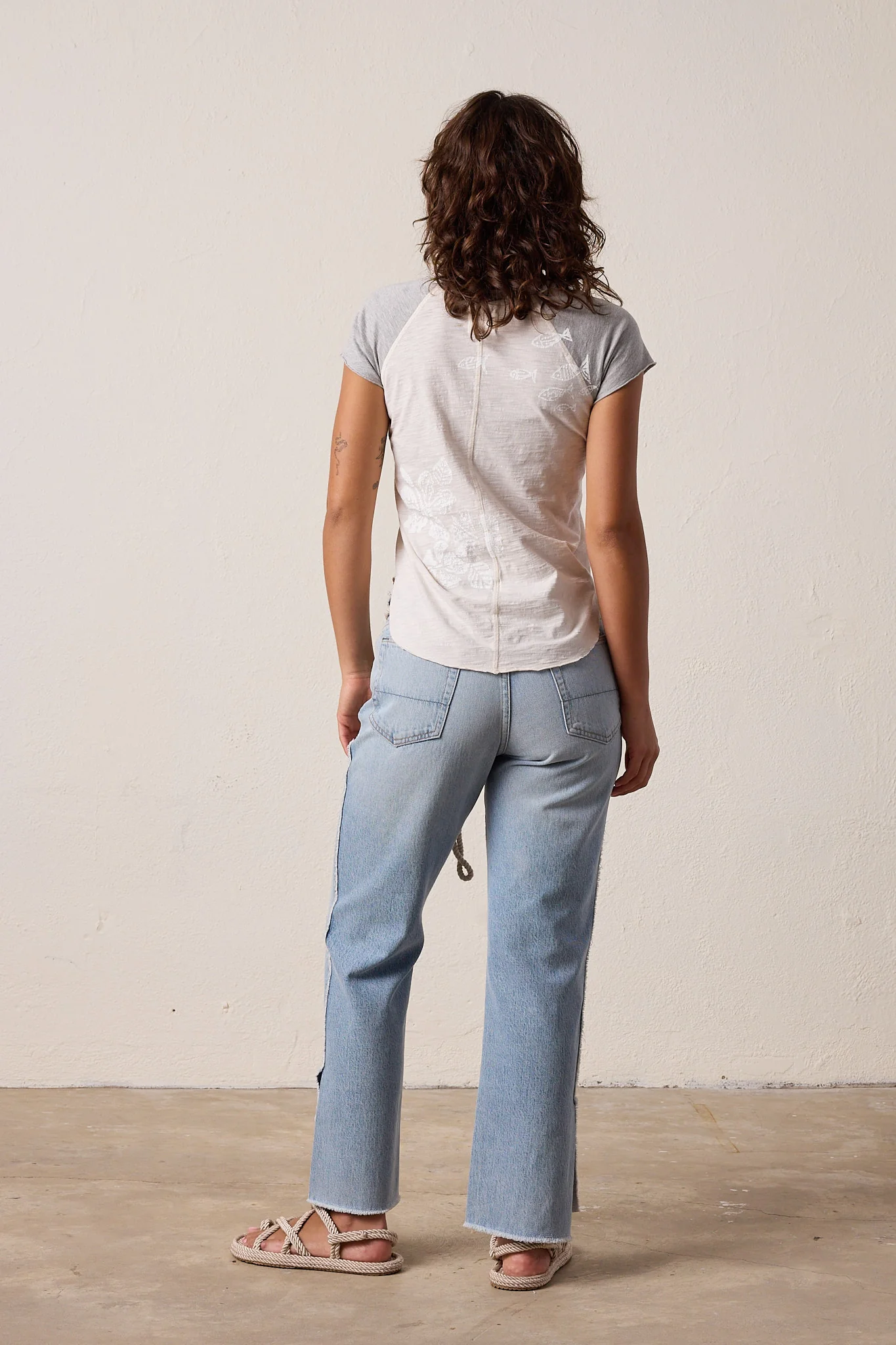 NSF Tara Melange Jersey Surf City Mini Crew Tee - Charcoal Heather Gray