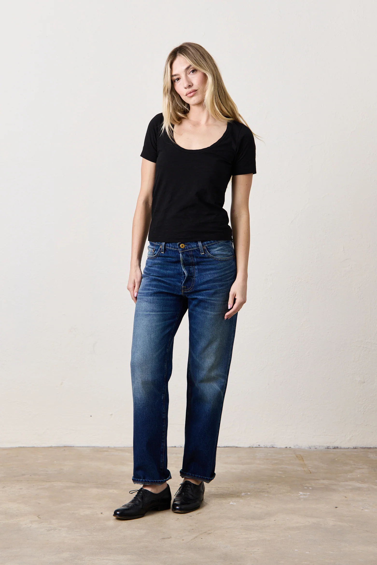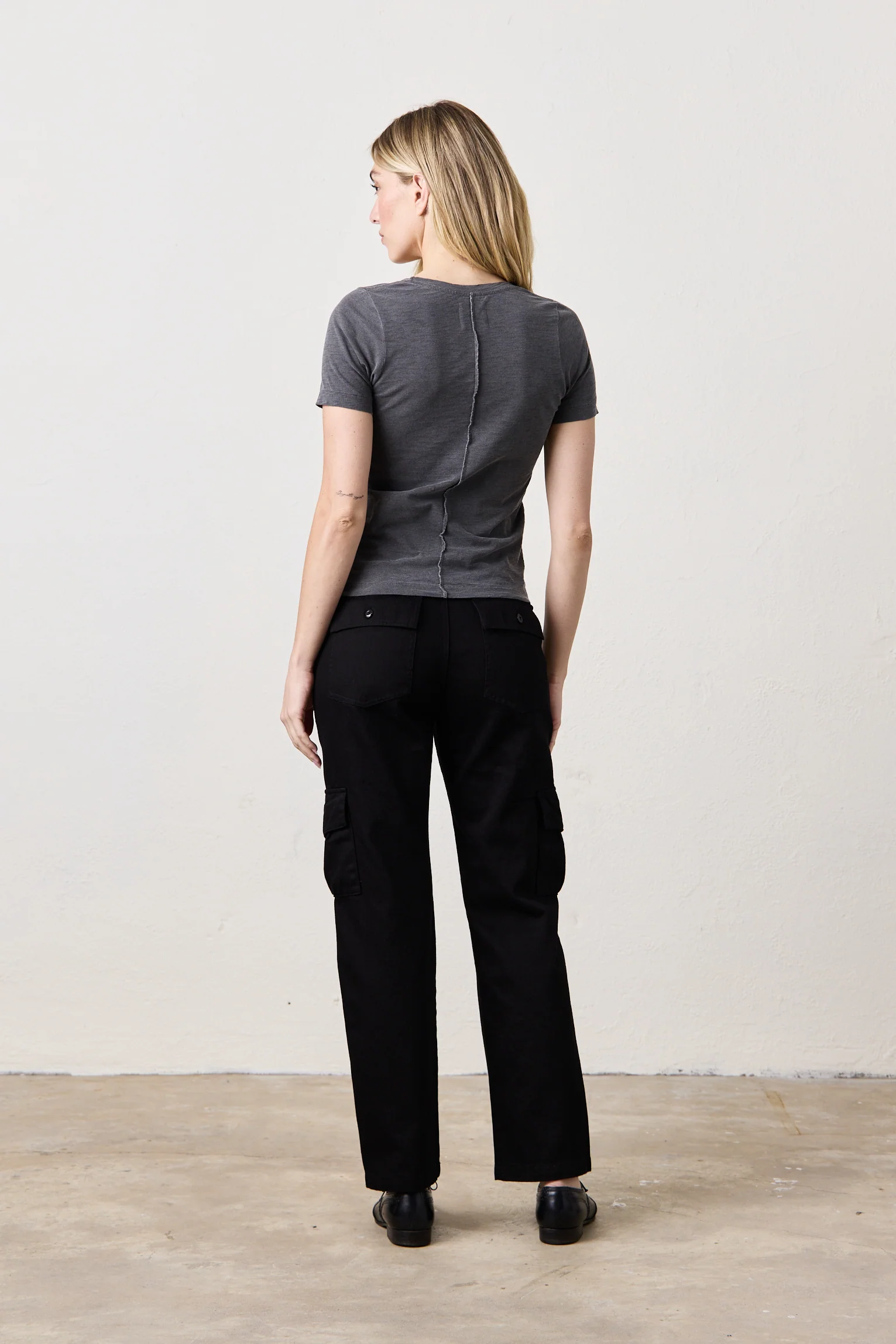NSF Tally Slim Fit U Neck Slub Jersey Tee - Faded Black