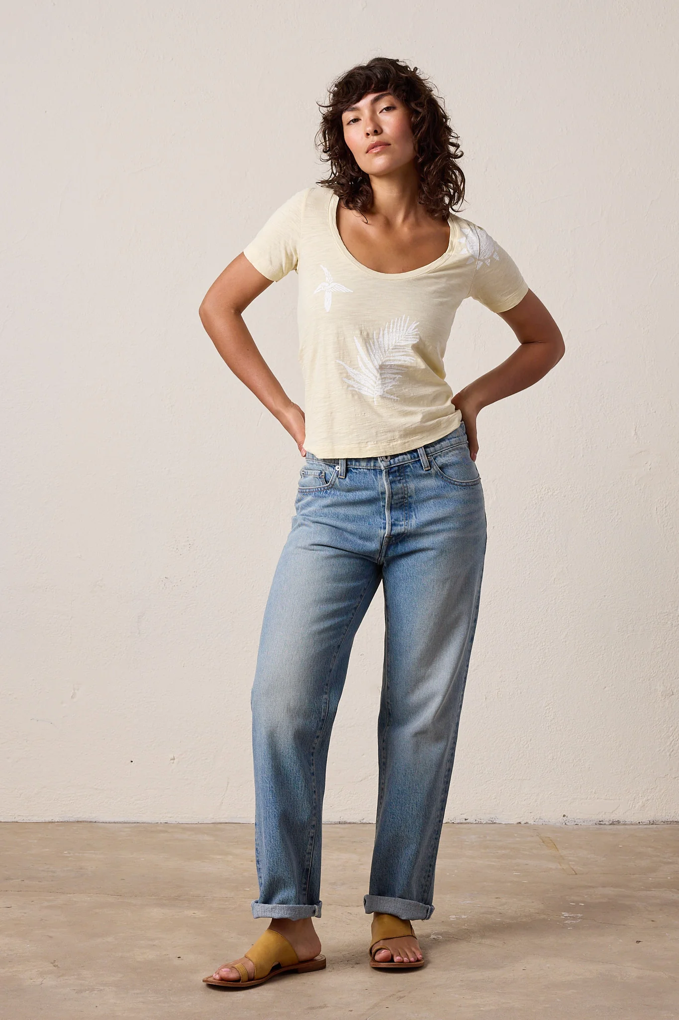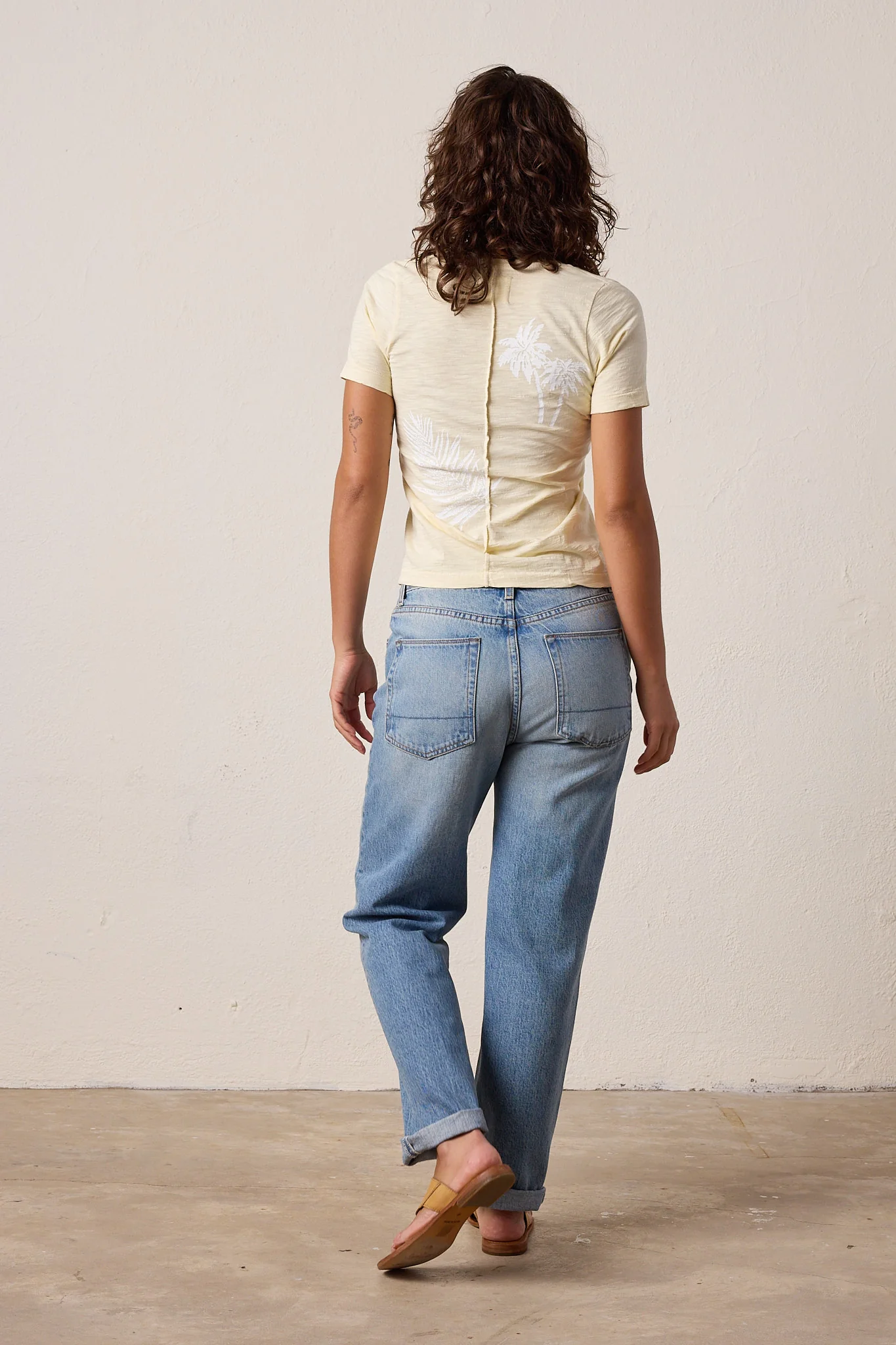 NSF Tally Slim Fit U Neck Slub Jersey Surf City Tee - Lemonade