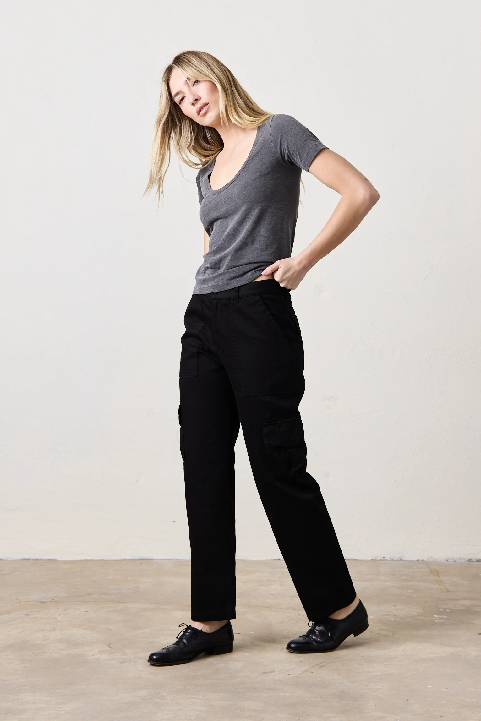 NSF Tally Slim Fit U Neck Slub Jersey Tee - Black