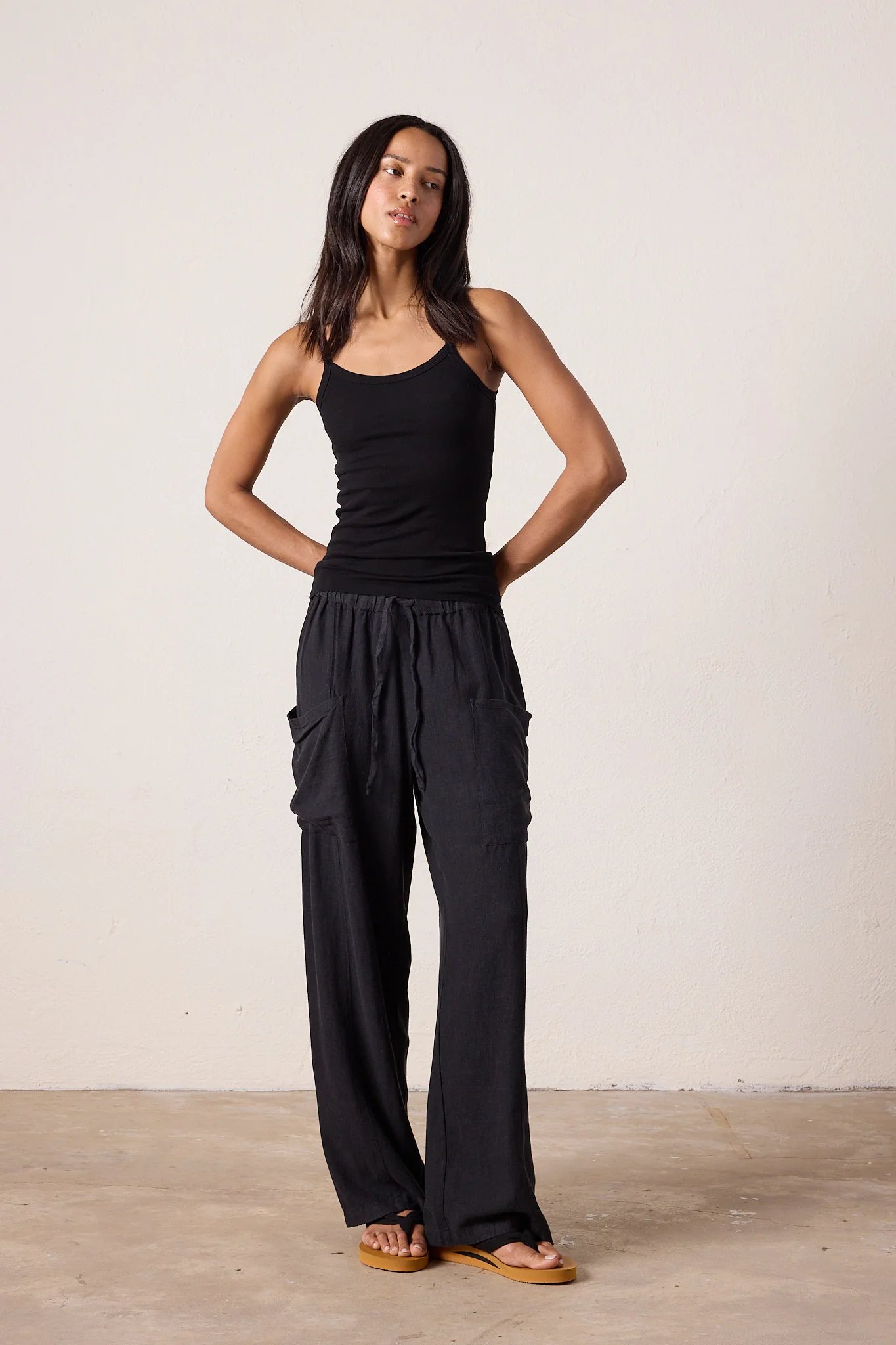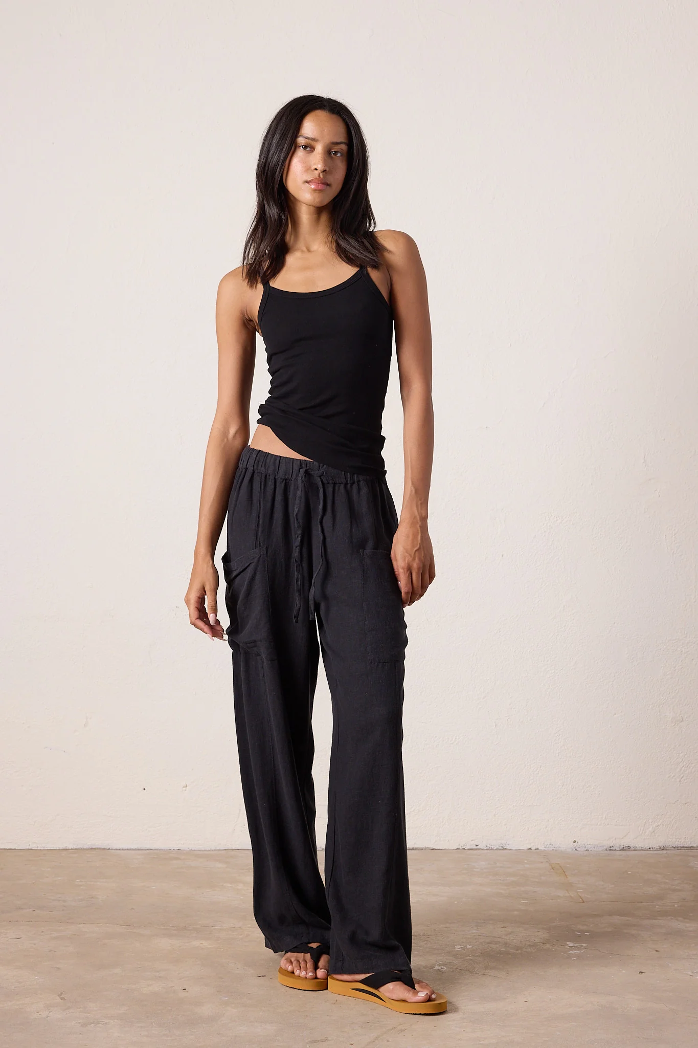 NSF Sydney Wide Leg Linen Viscose Pant - Black