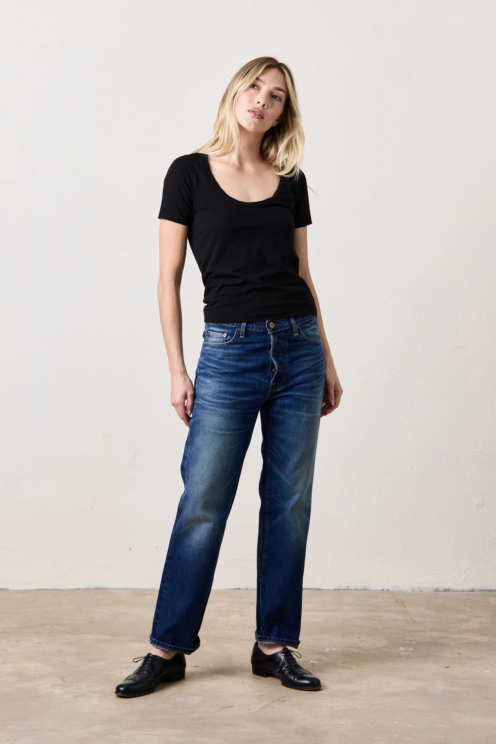 NSF Tally Slim Fit U Neck Slub Jersey Tee - Blue Perl