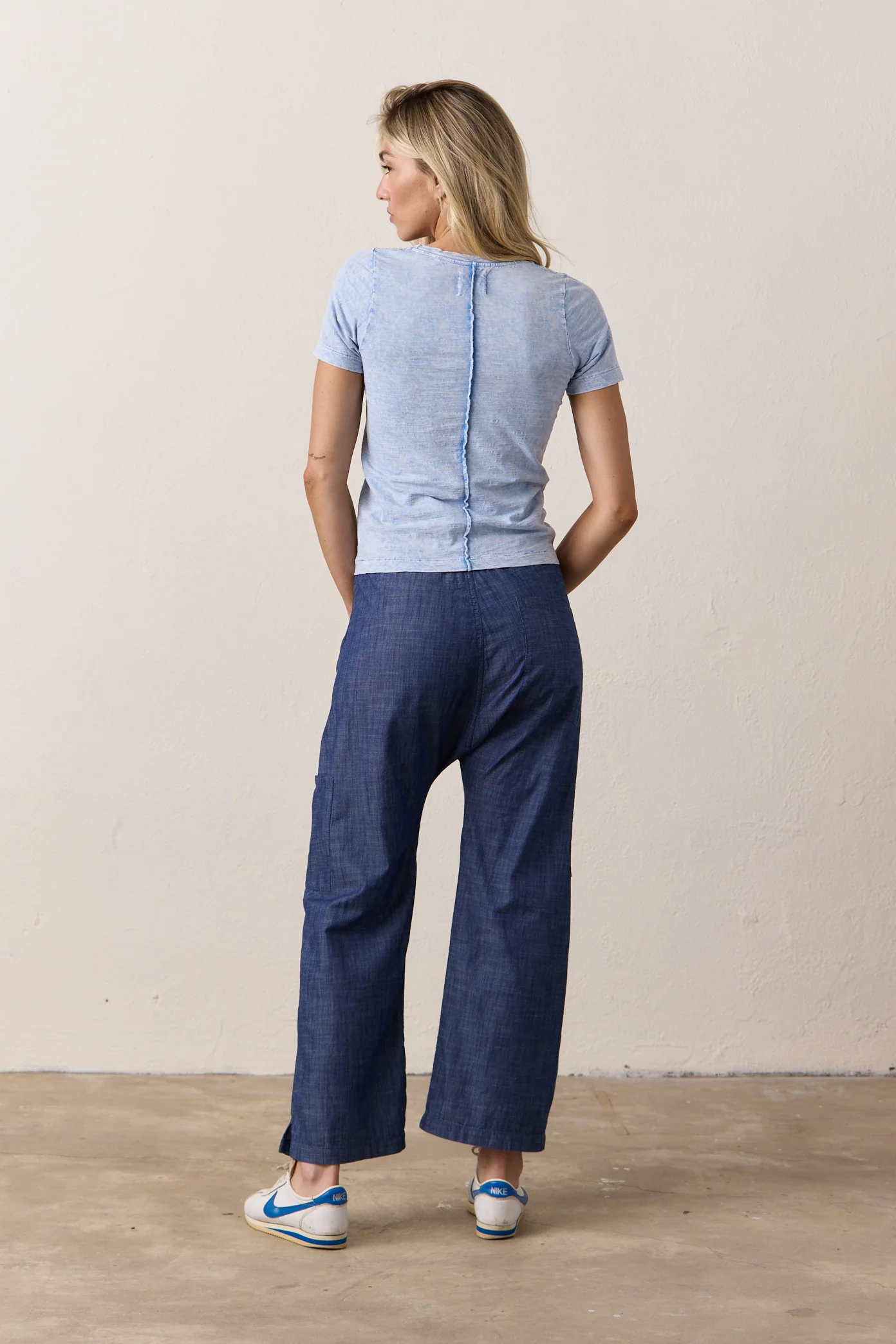 NSF Sydney Wide Leg Linen Viscose Pant - Indigo