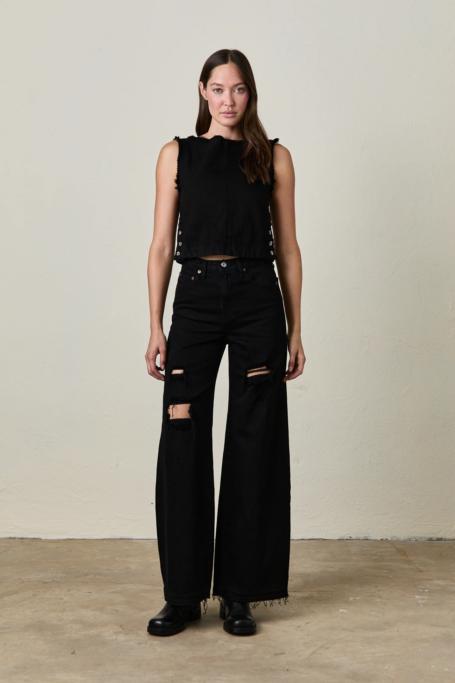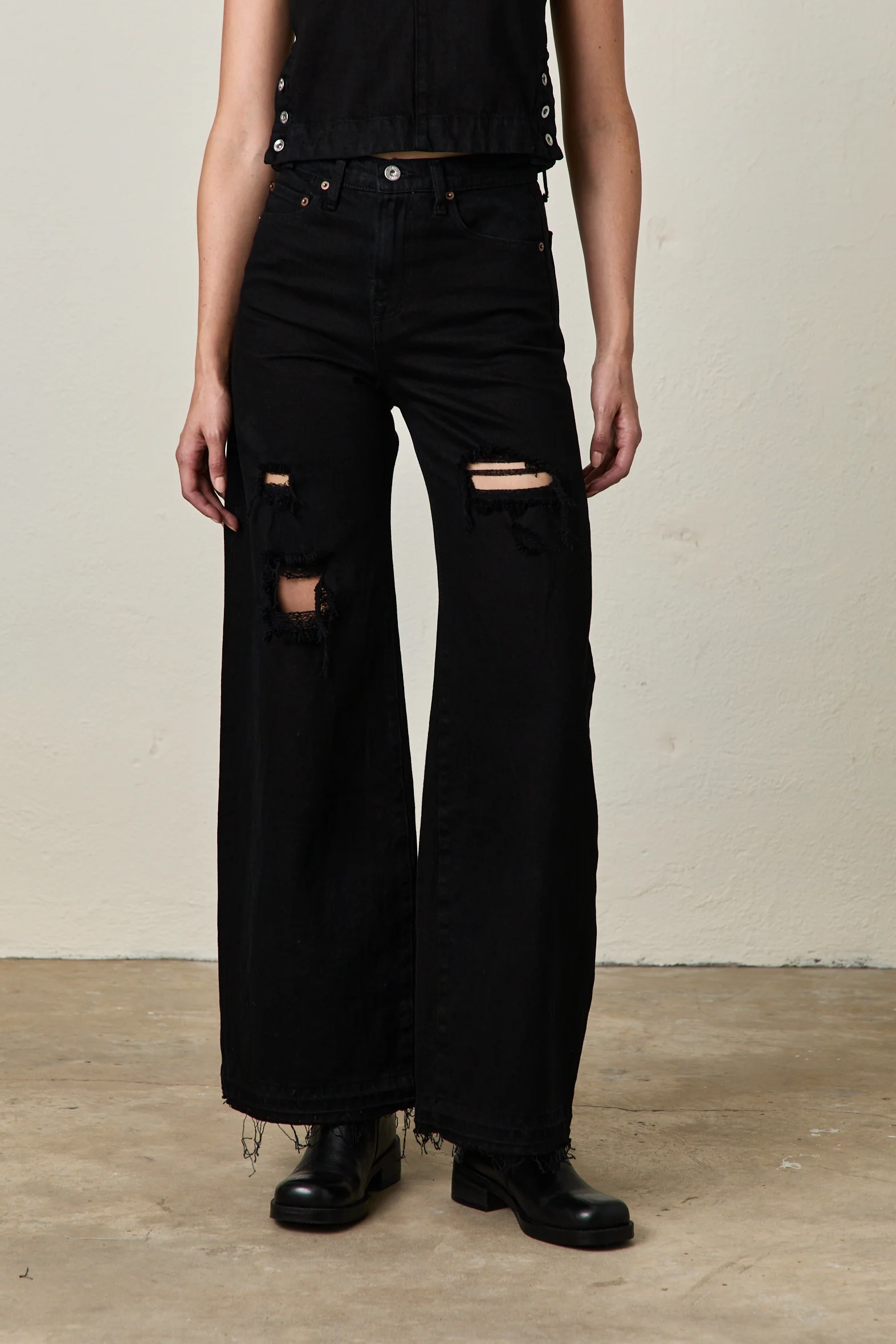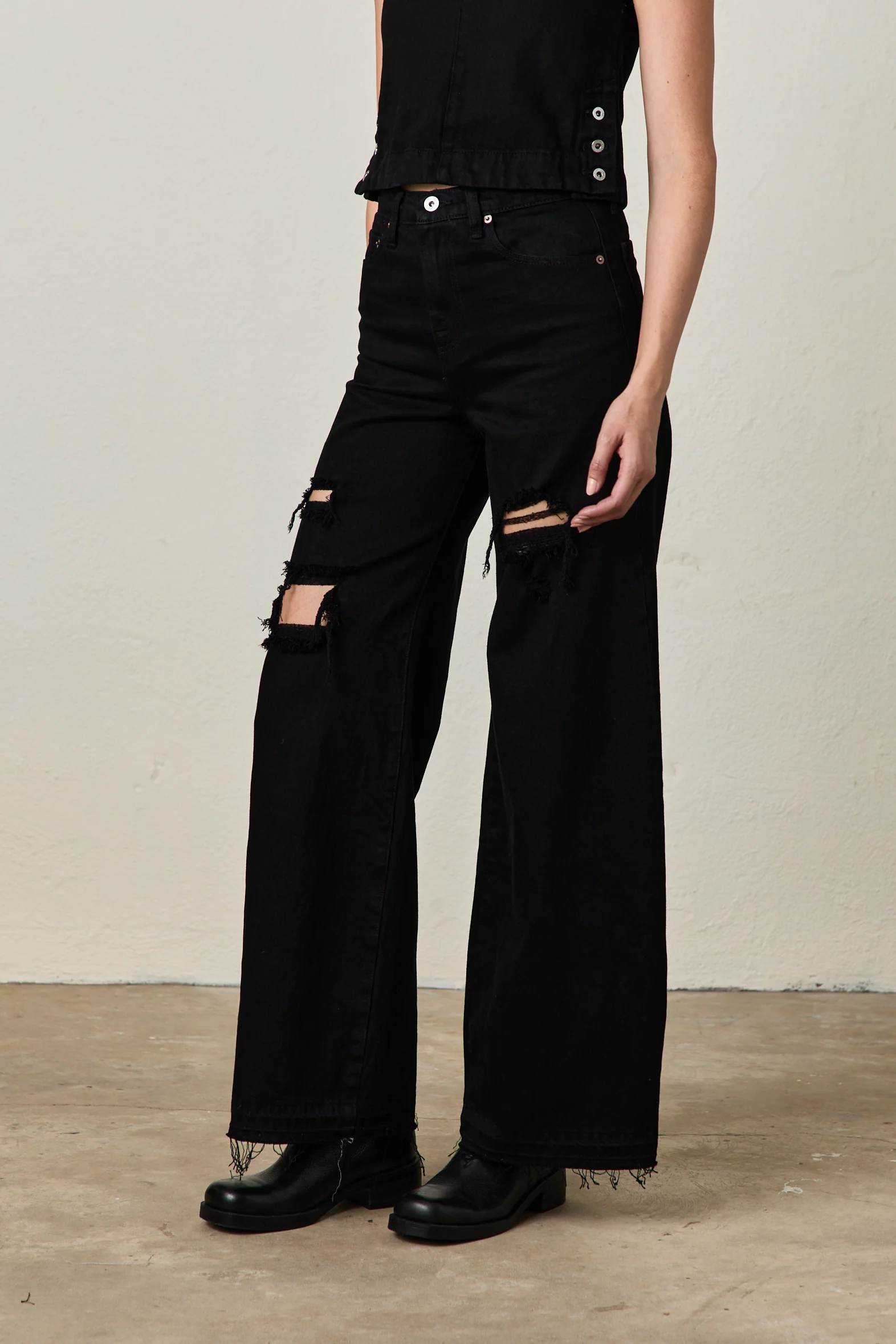 DELTA HIGH WAIST WIDE LEG JEAN / OVERDYE BLACK DESTROY