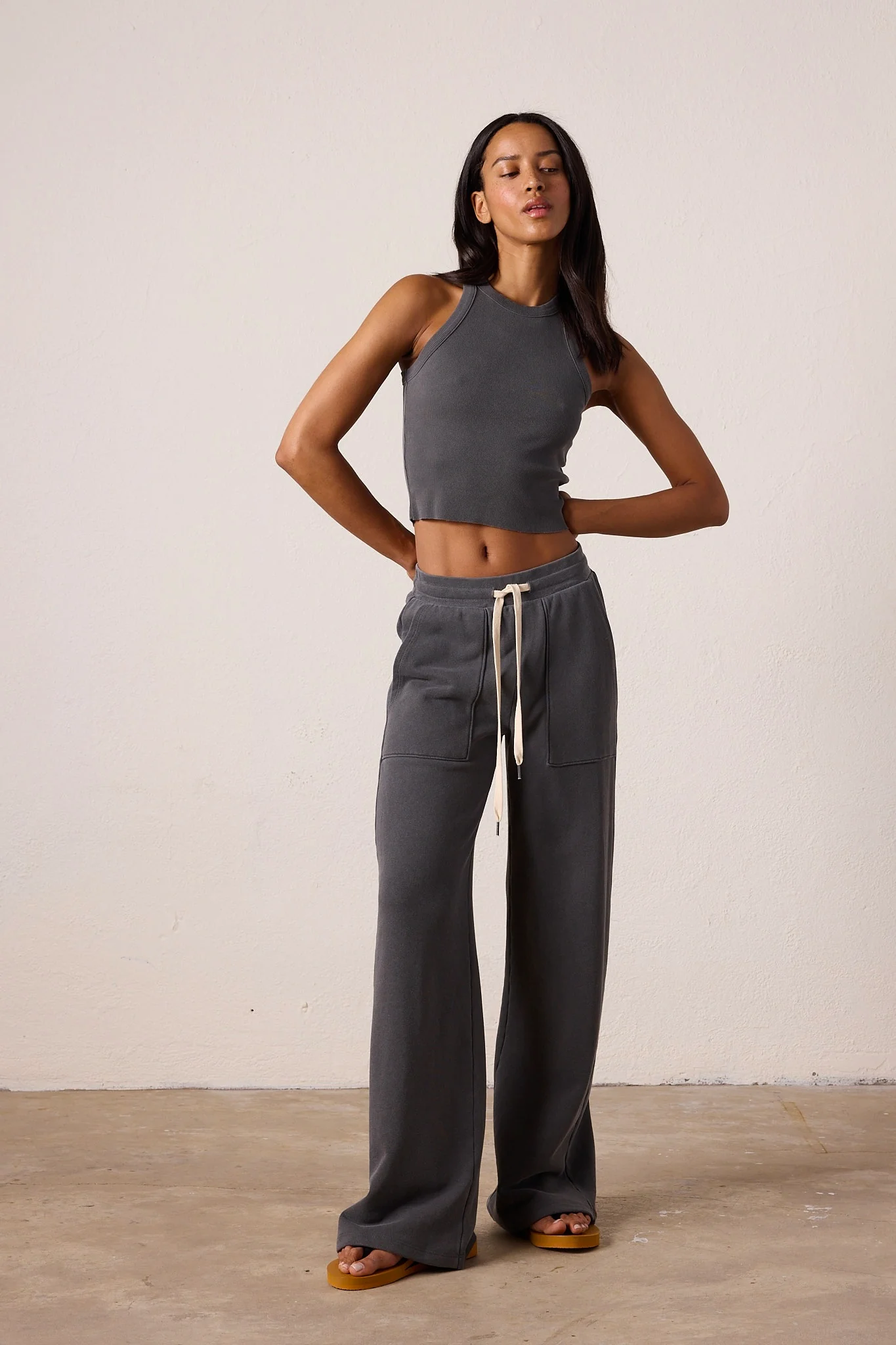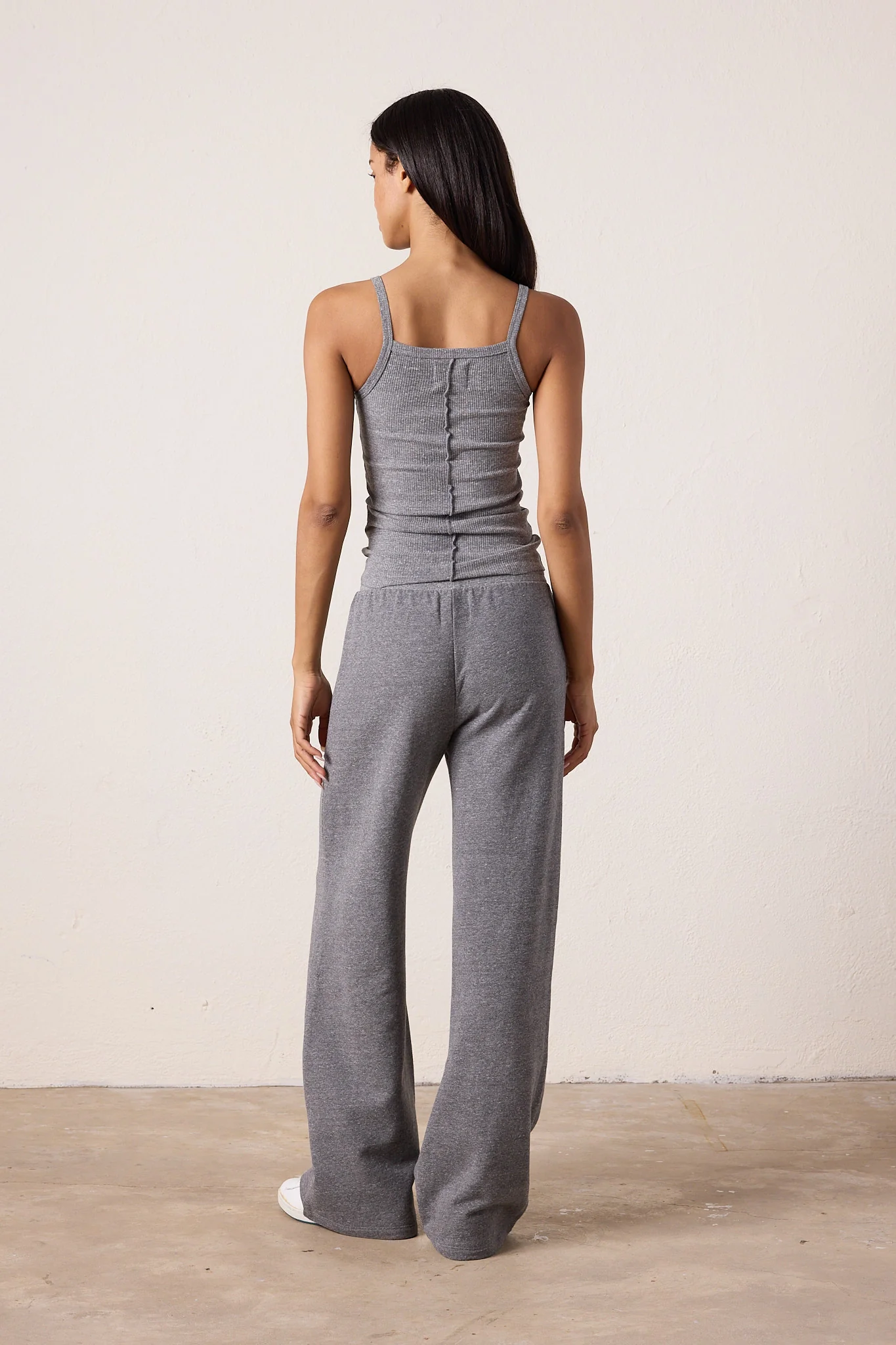 NSF Franky Wide Leg Melange Terry Sweatpant - Charcoal Heather Gray