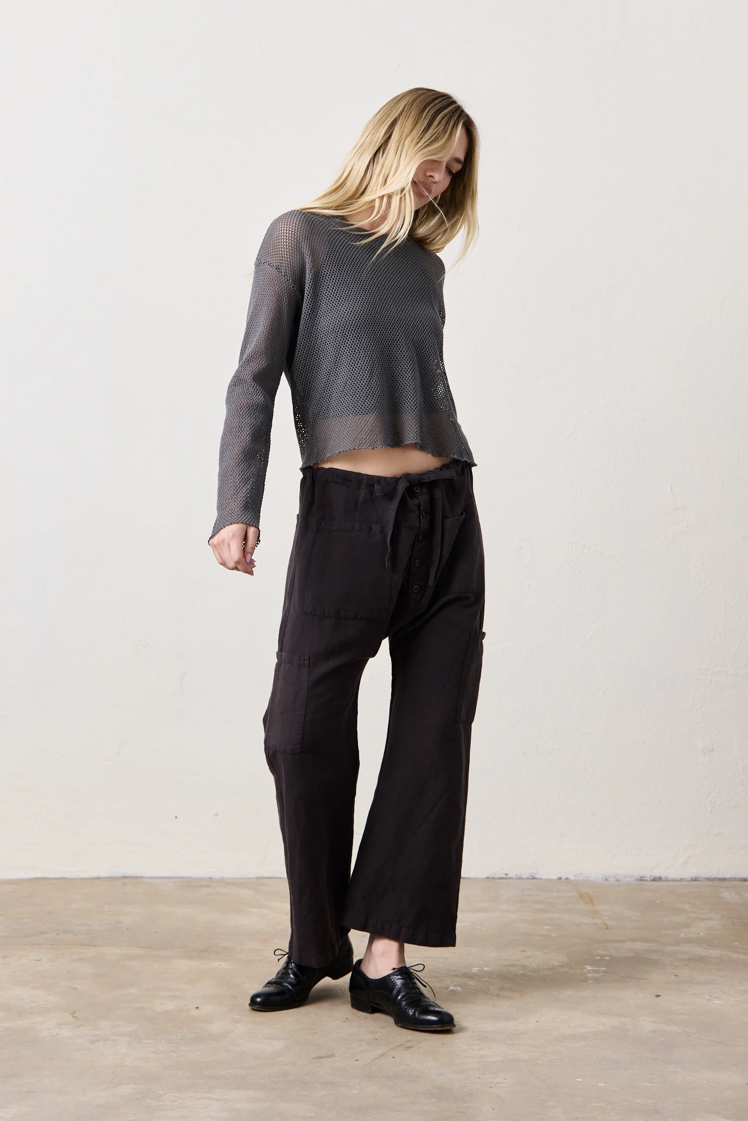 NSF Carlson Linen Cotton Tie Pant - Faded Black
