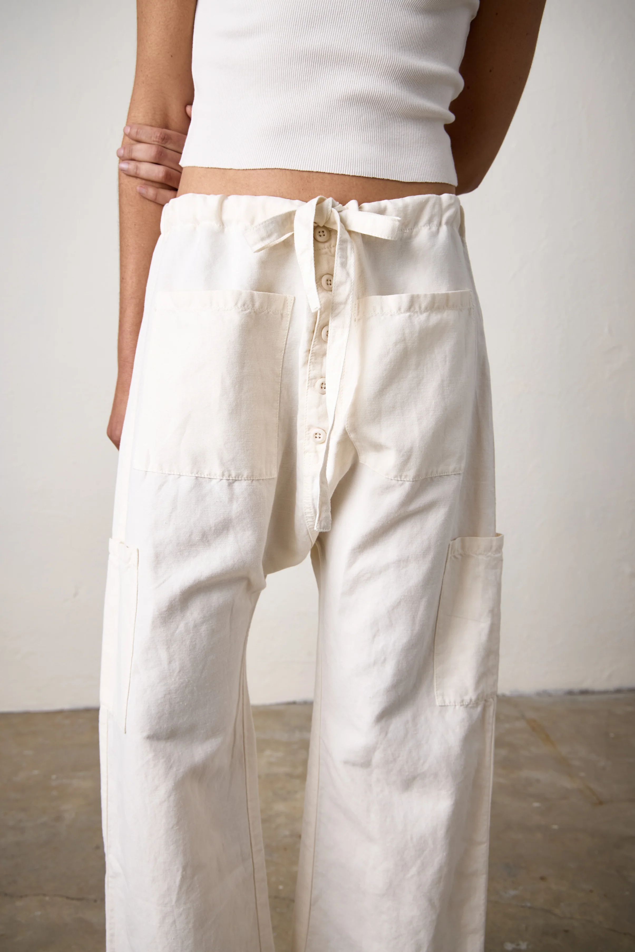NSF Carlson Linen Cotton Tie Pant - Ivory