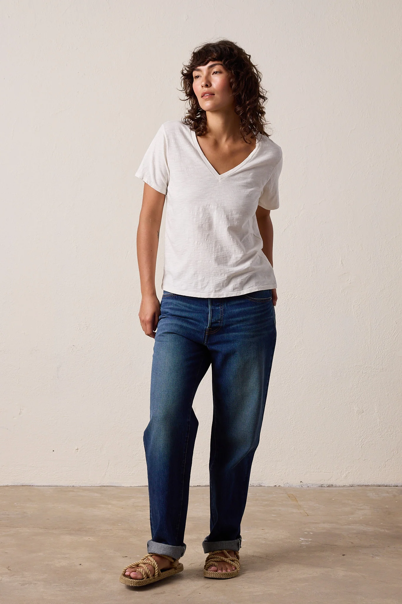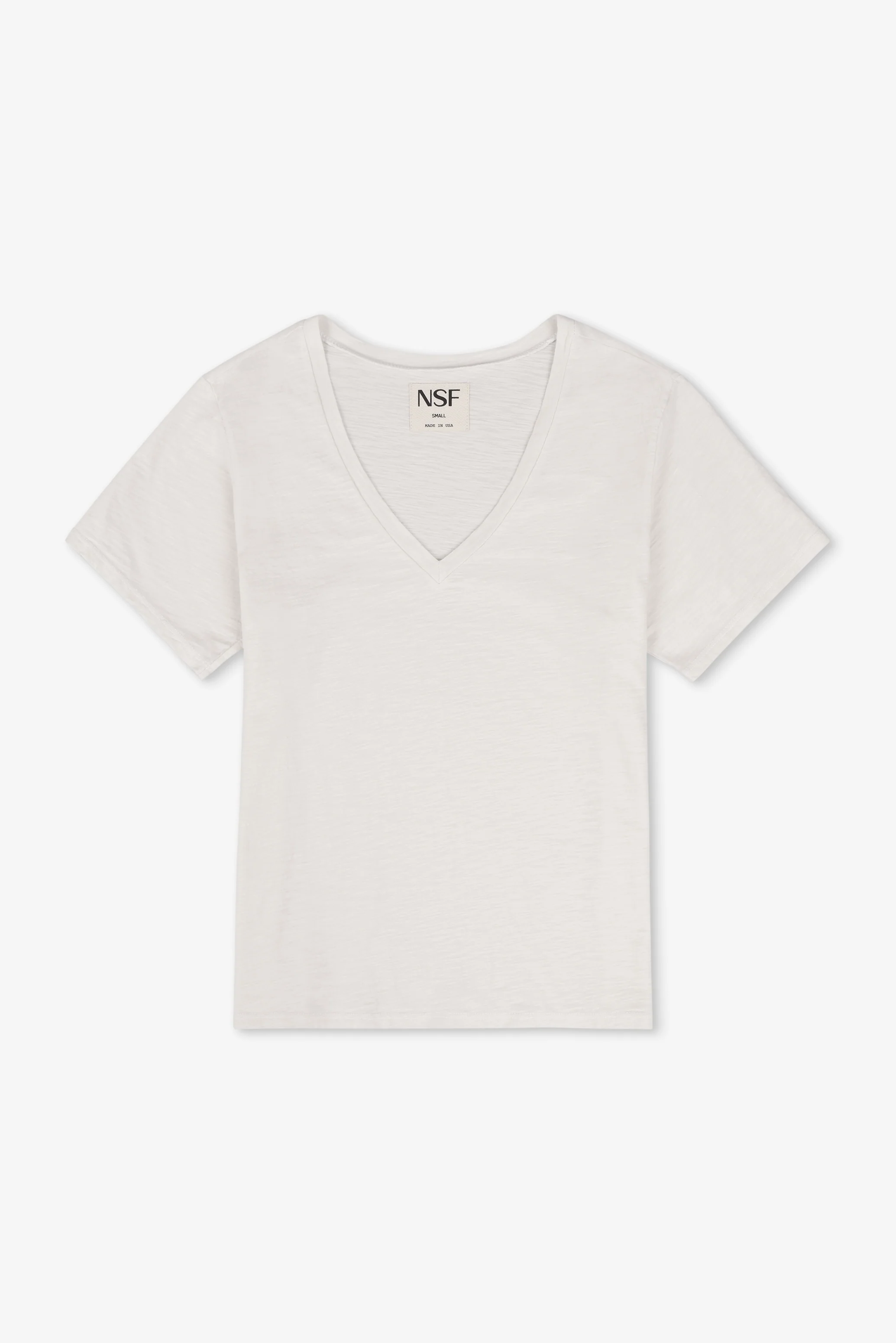 NSF Layla Relaxed V Neck Slub Jersey Tee - Soft White