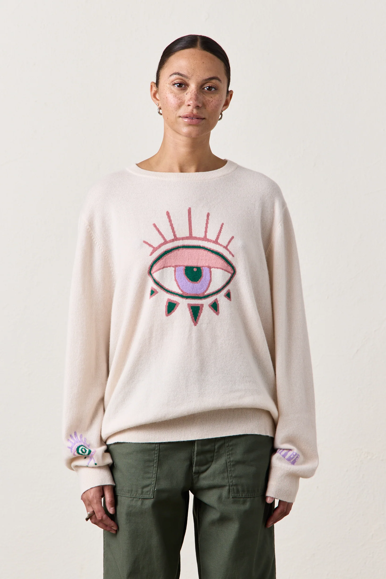 NSF X Jacquie Aiche - Big Eye Cashmere Crew - Feather