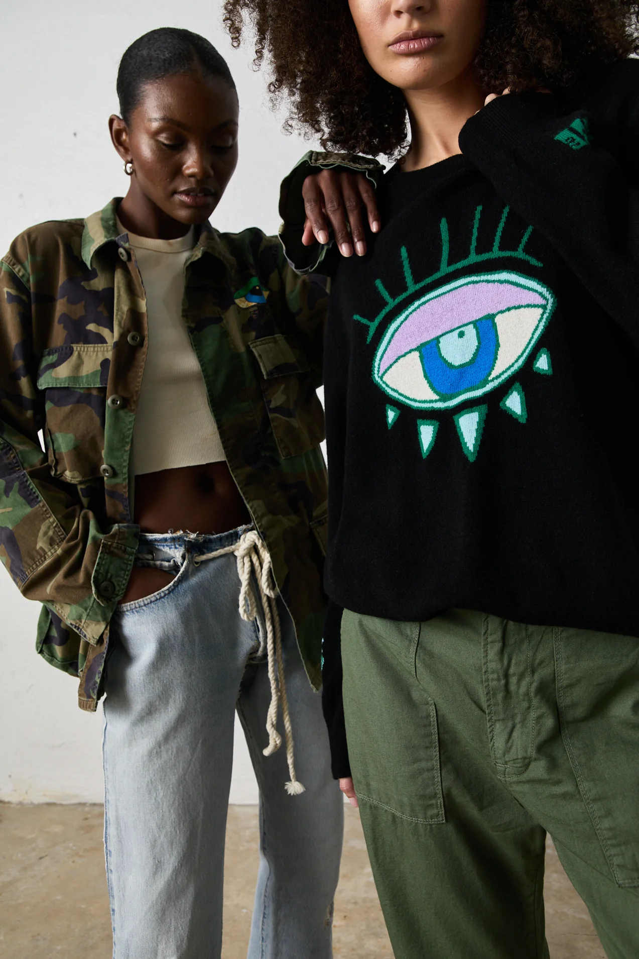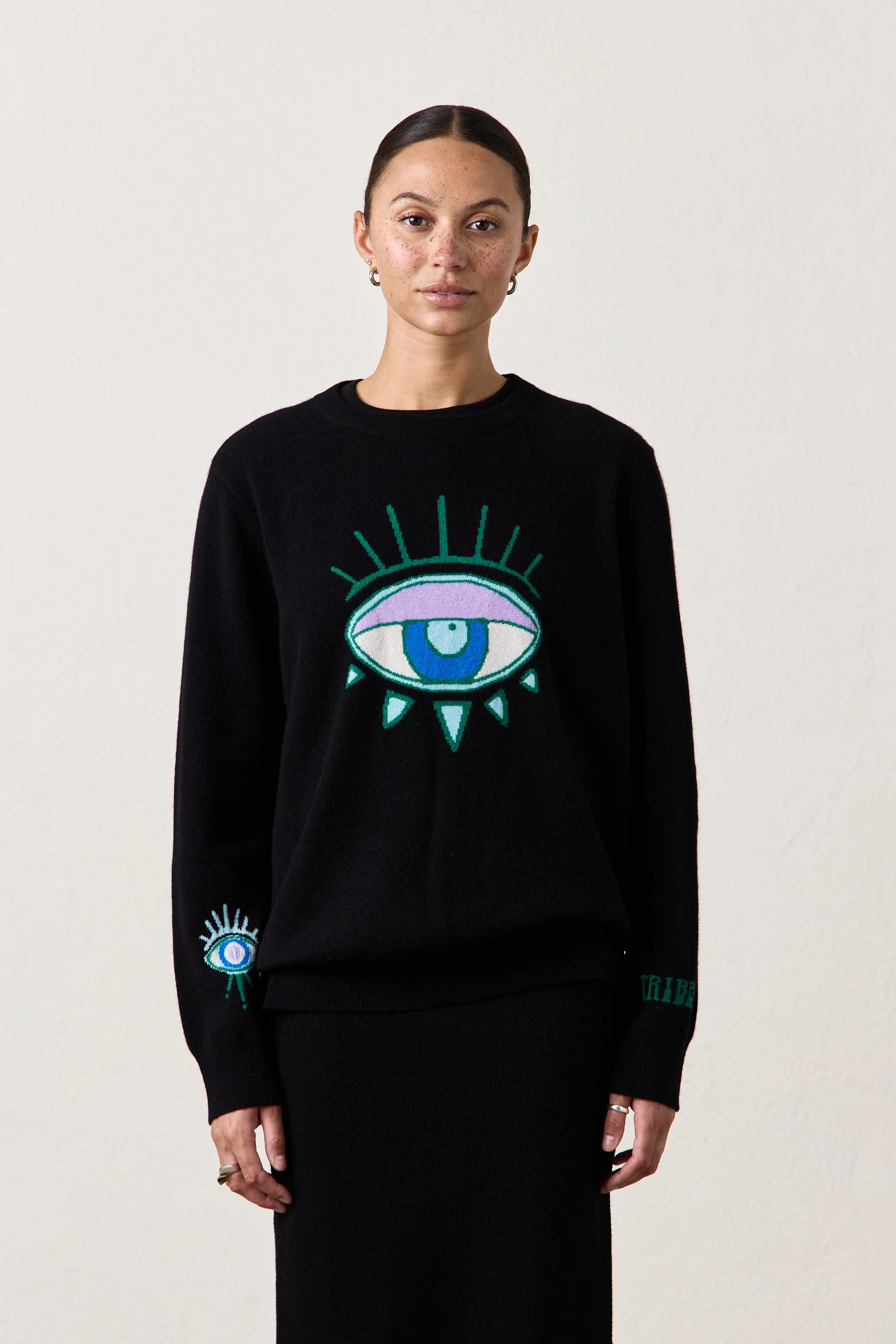 NSF X Jacquie Aiche - Big Eye Cashmere Crew - Black