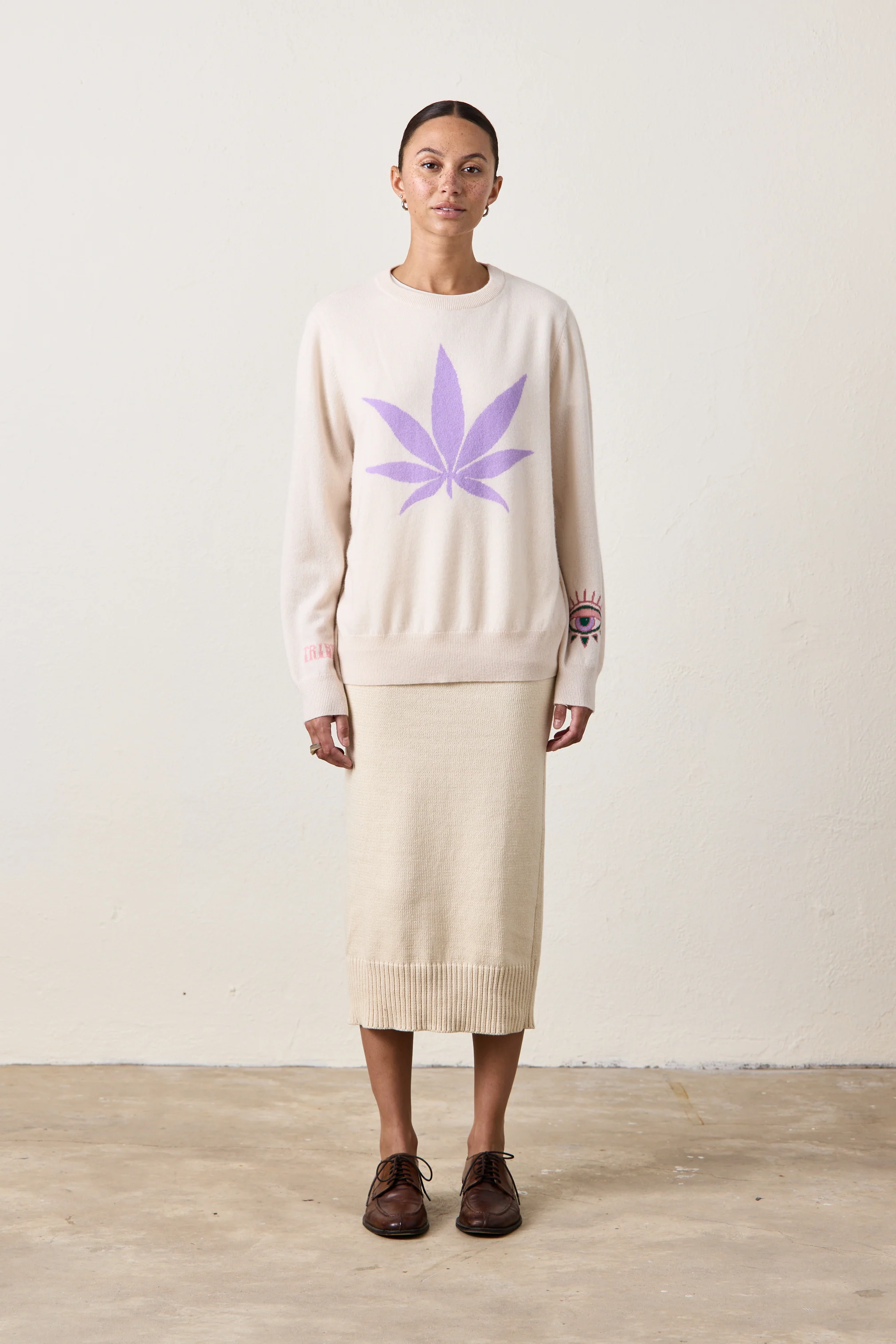NSF X Jacquie Aiche Sweet Leaf Cashmere Crew - Feather