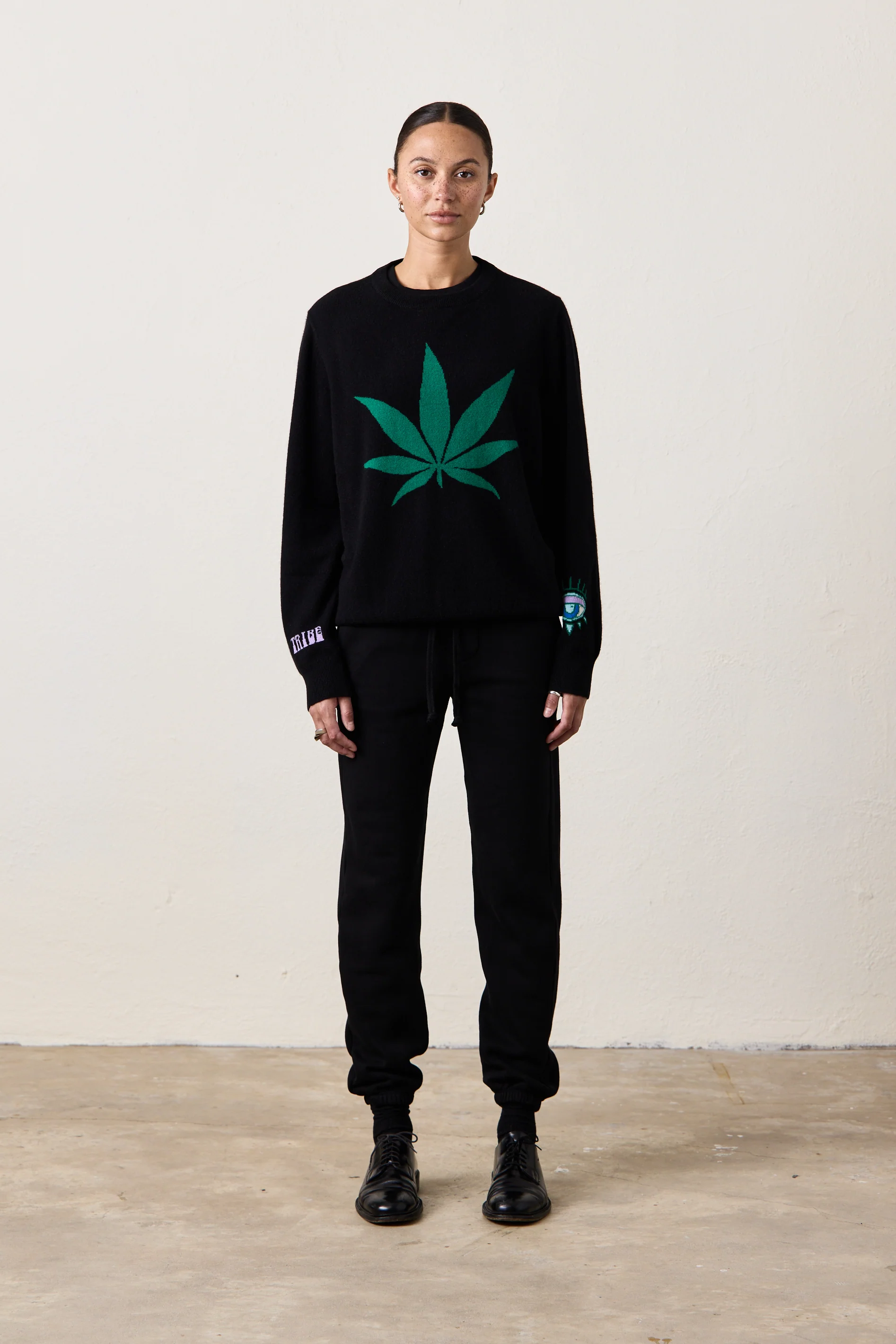 NSF X Jacquie Aiche Sweet Leaf Cashmere Crew - Black