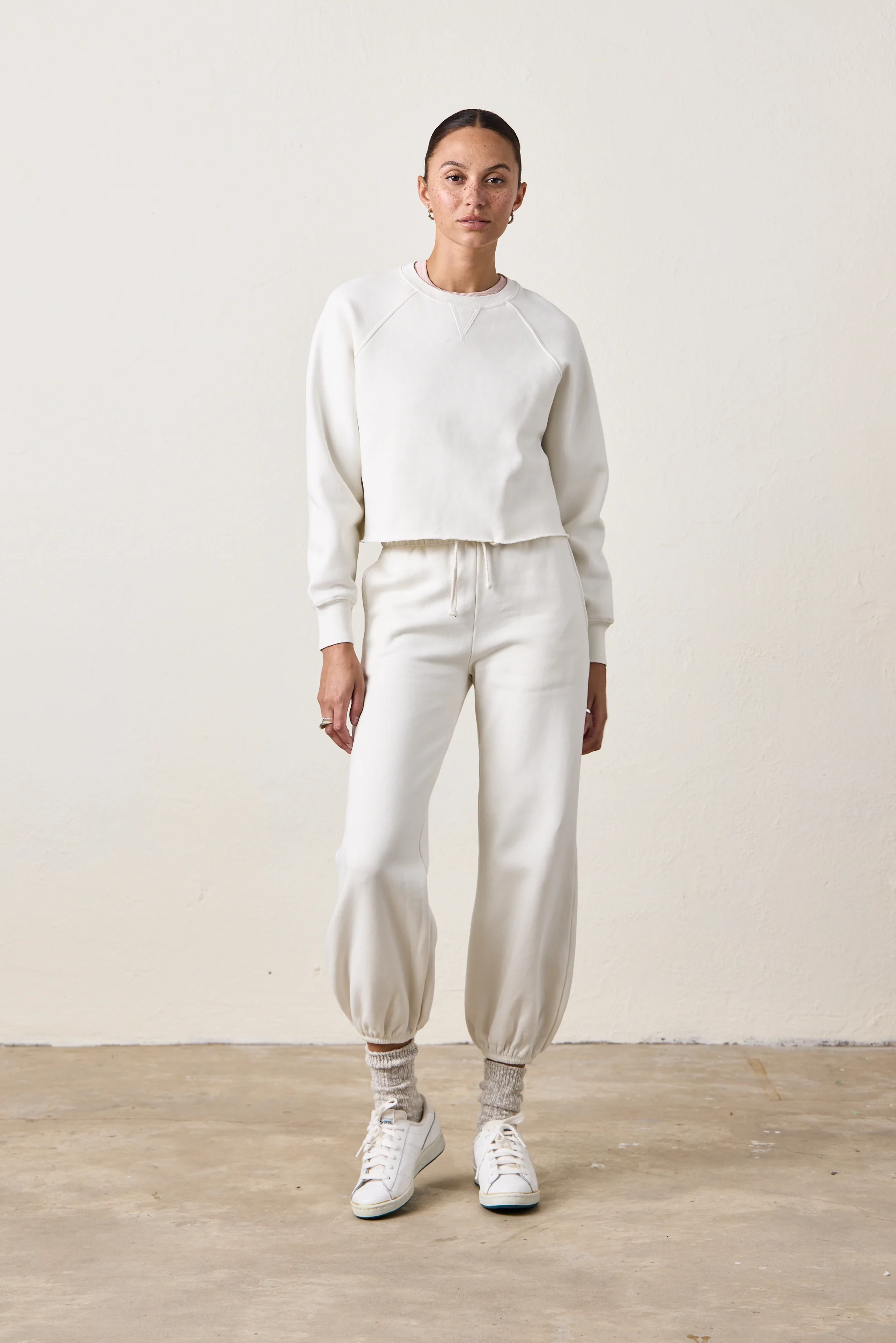 MARCO CROP COZY FLEECE SWEATSHIRT / SOFT WHITE