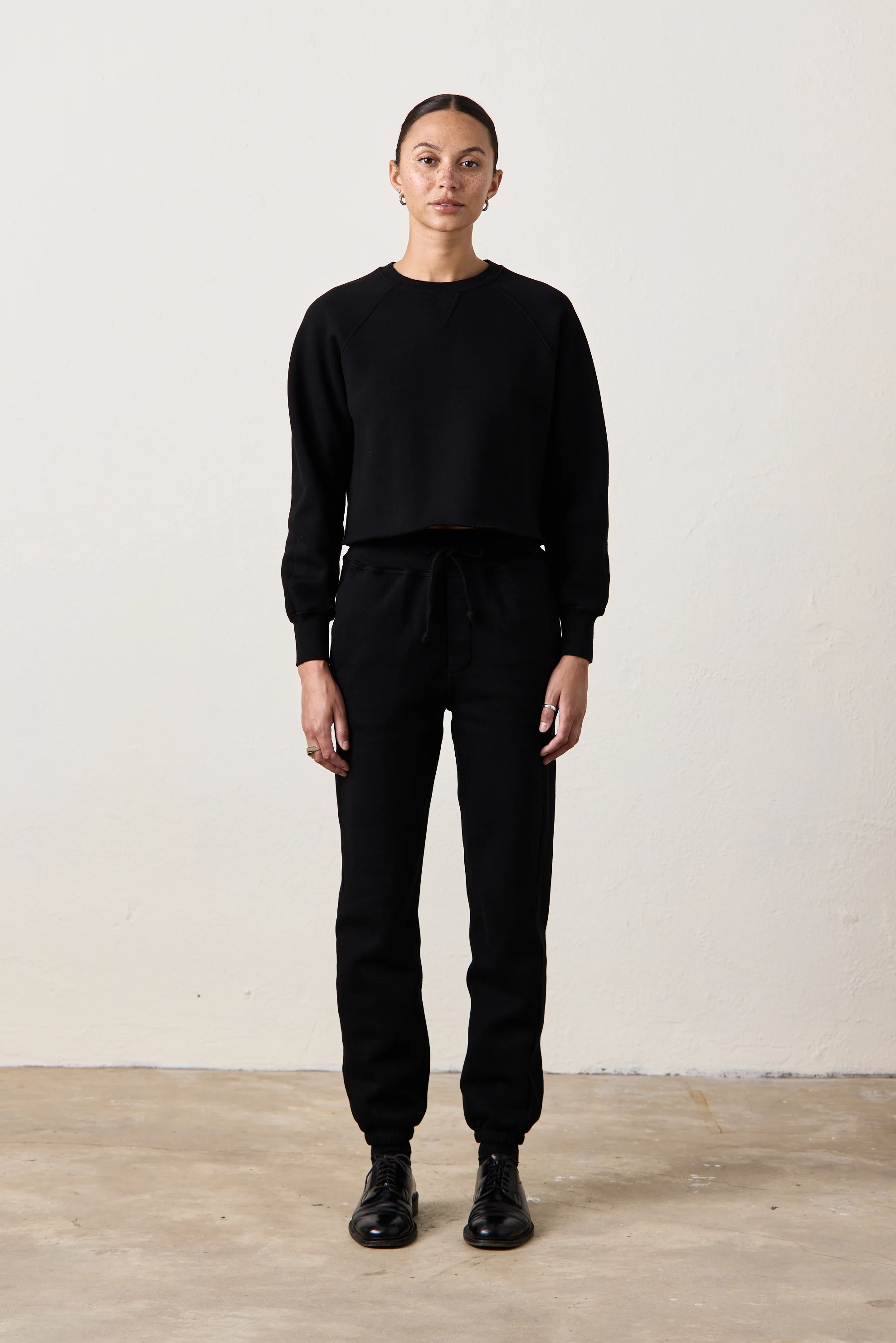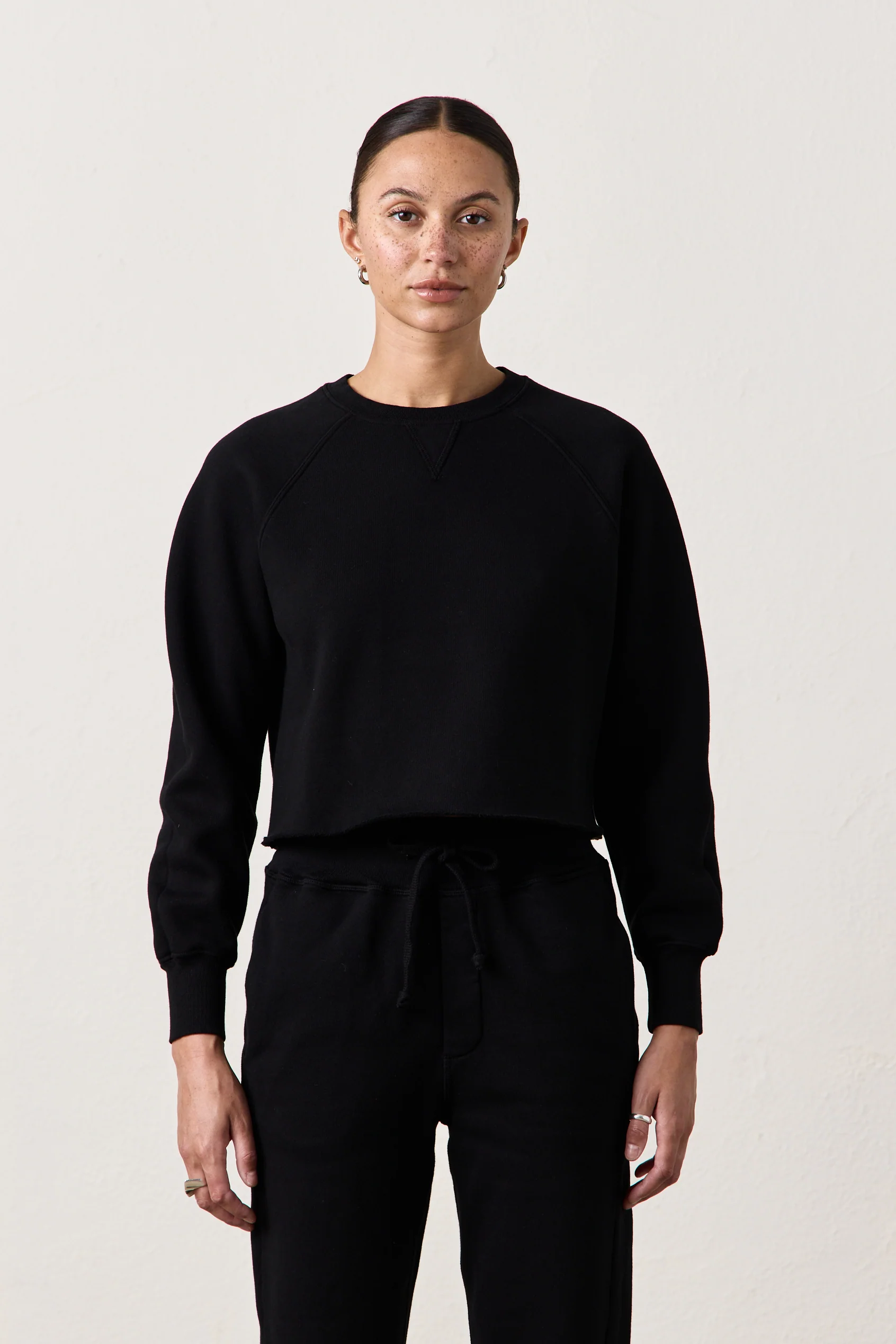 MARCO CROP COZY FLEECE SWEATSHIRT / BLACK