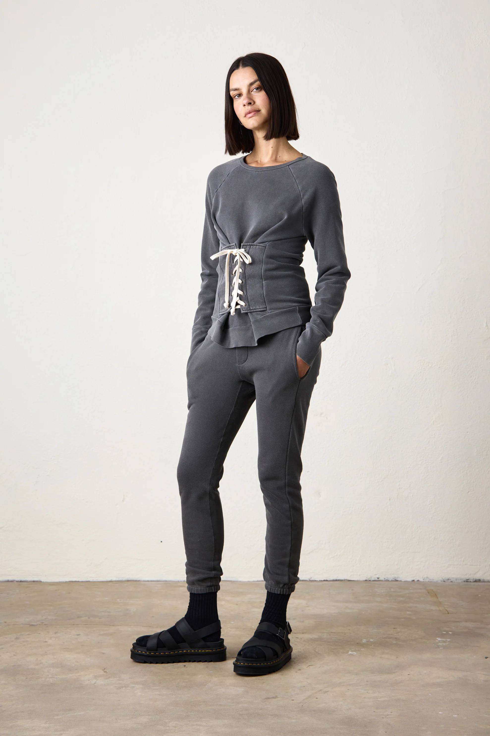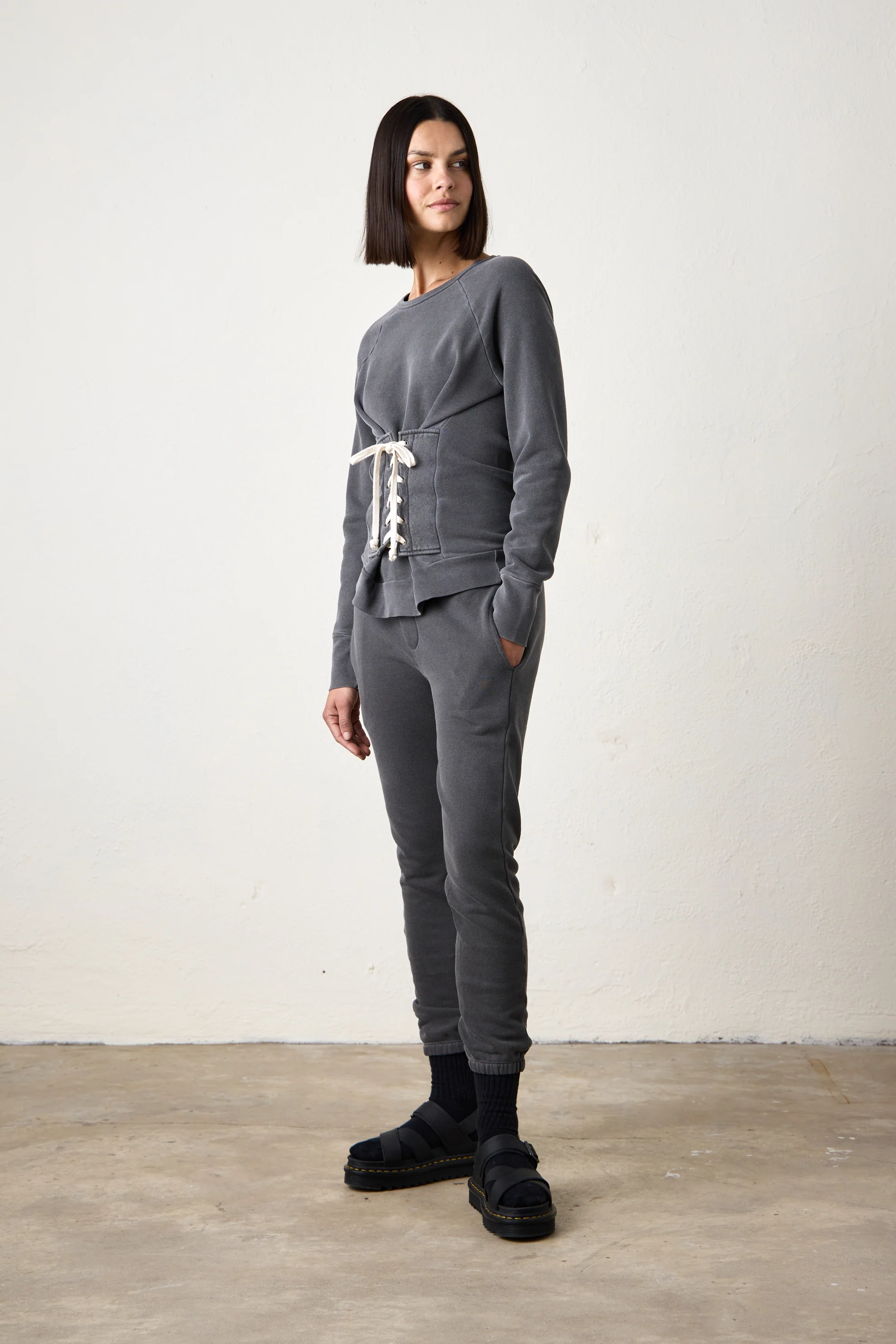 NSF Elio Corset Loop Terry Crew - Faded Black