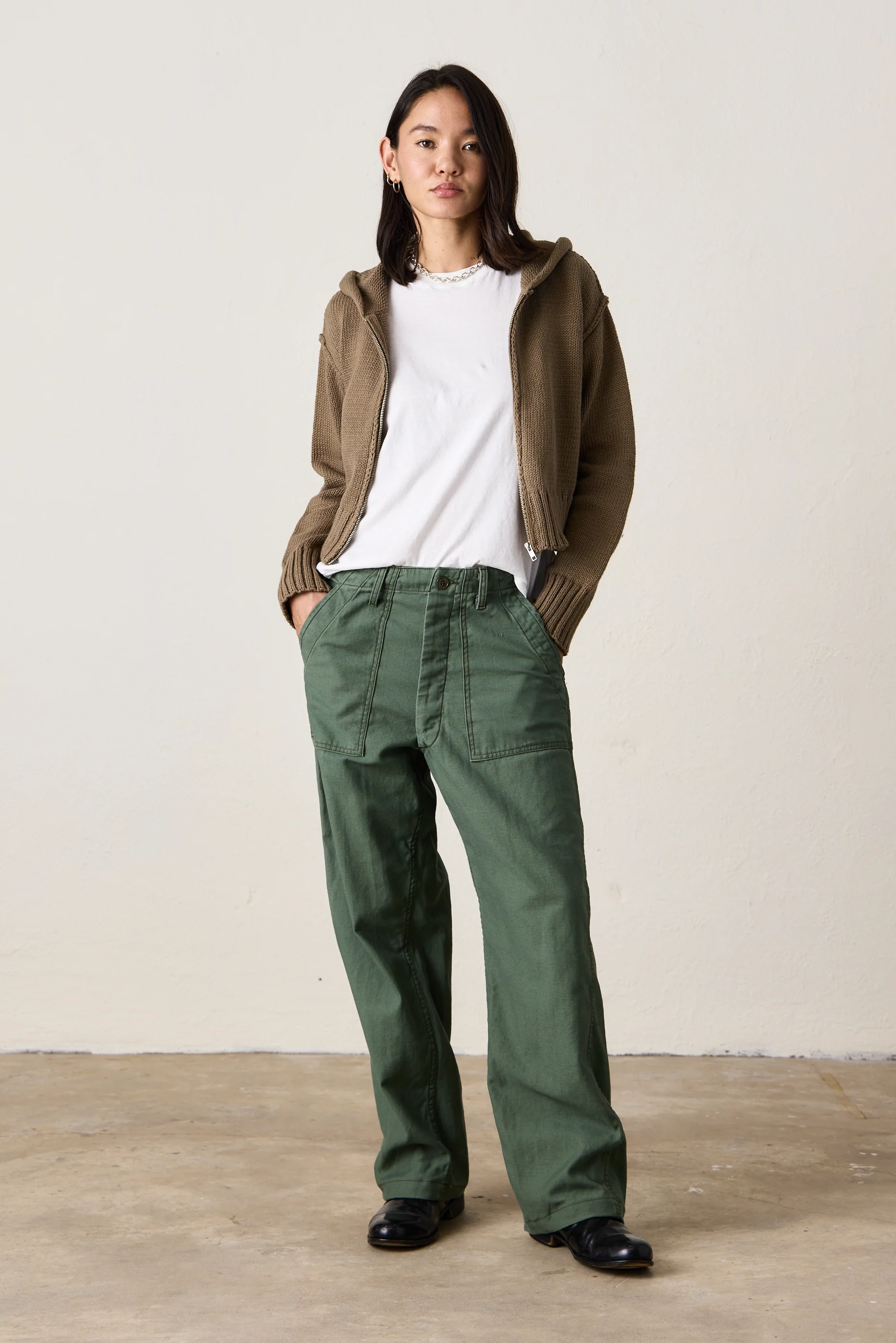 MILLS ZIP FRONT HOODED SWEATER / KHAKI