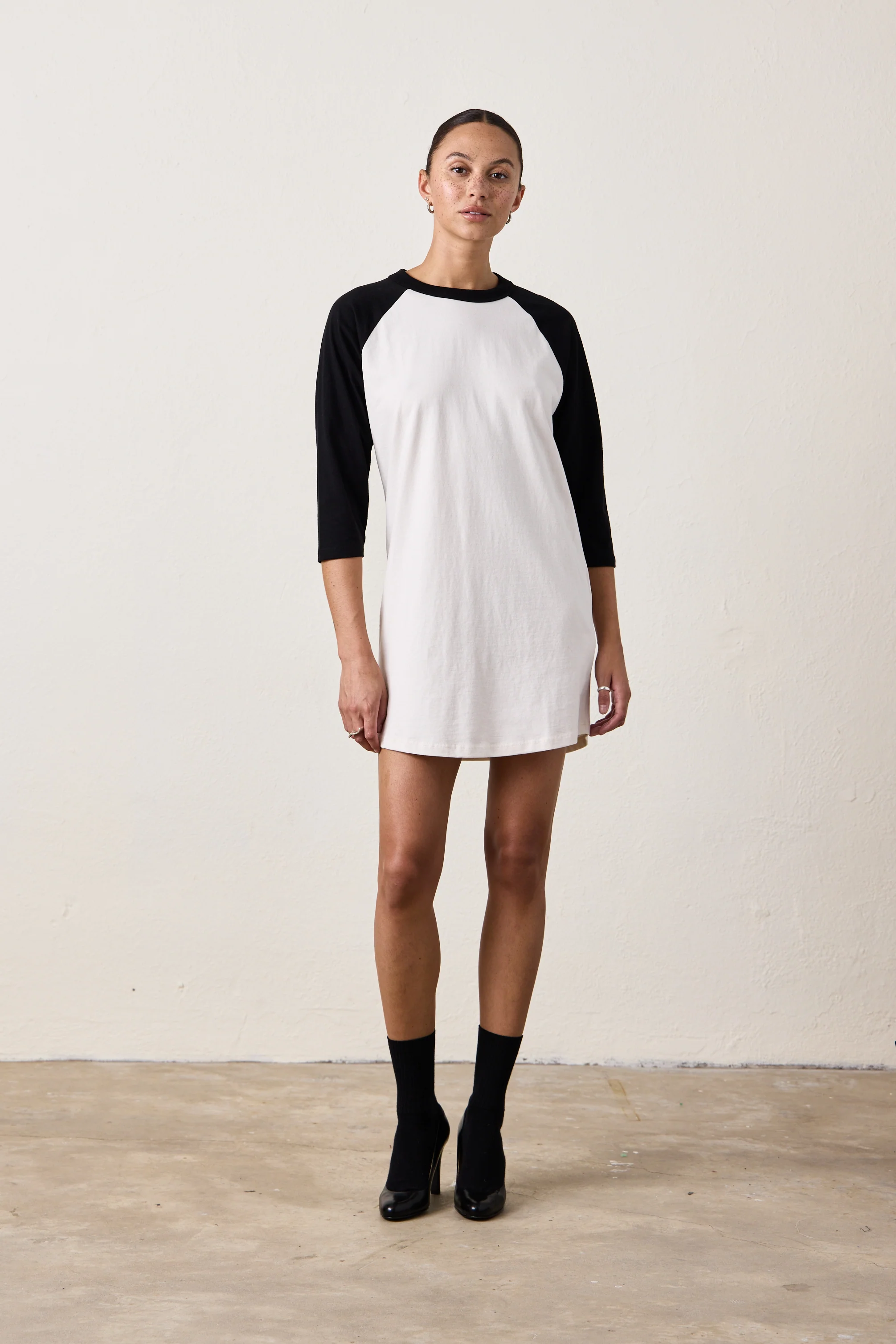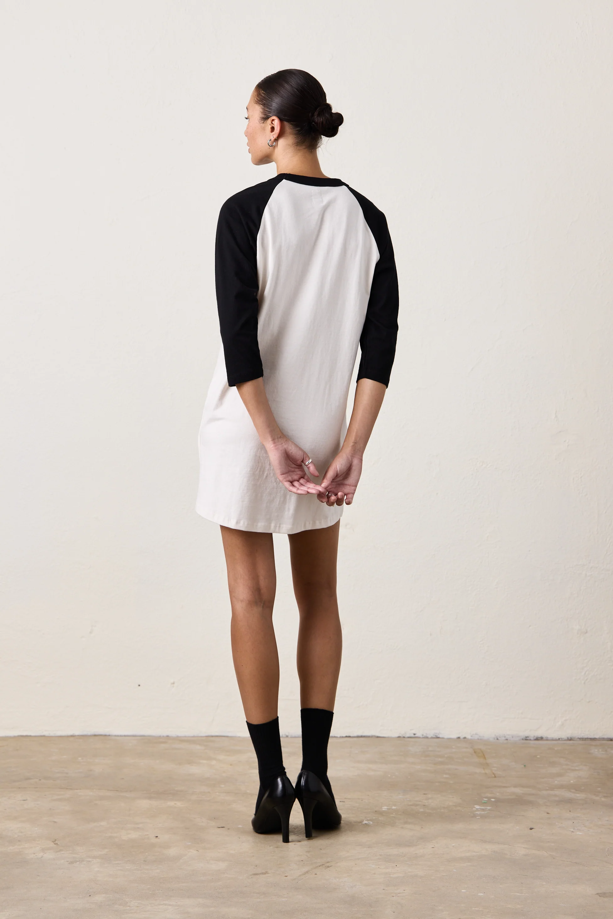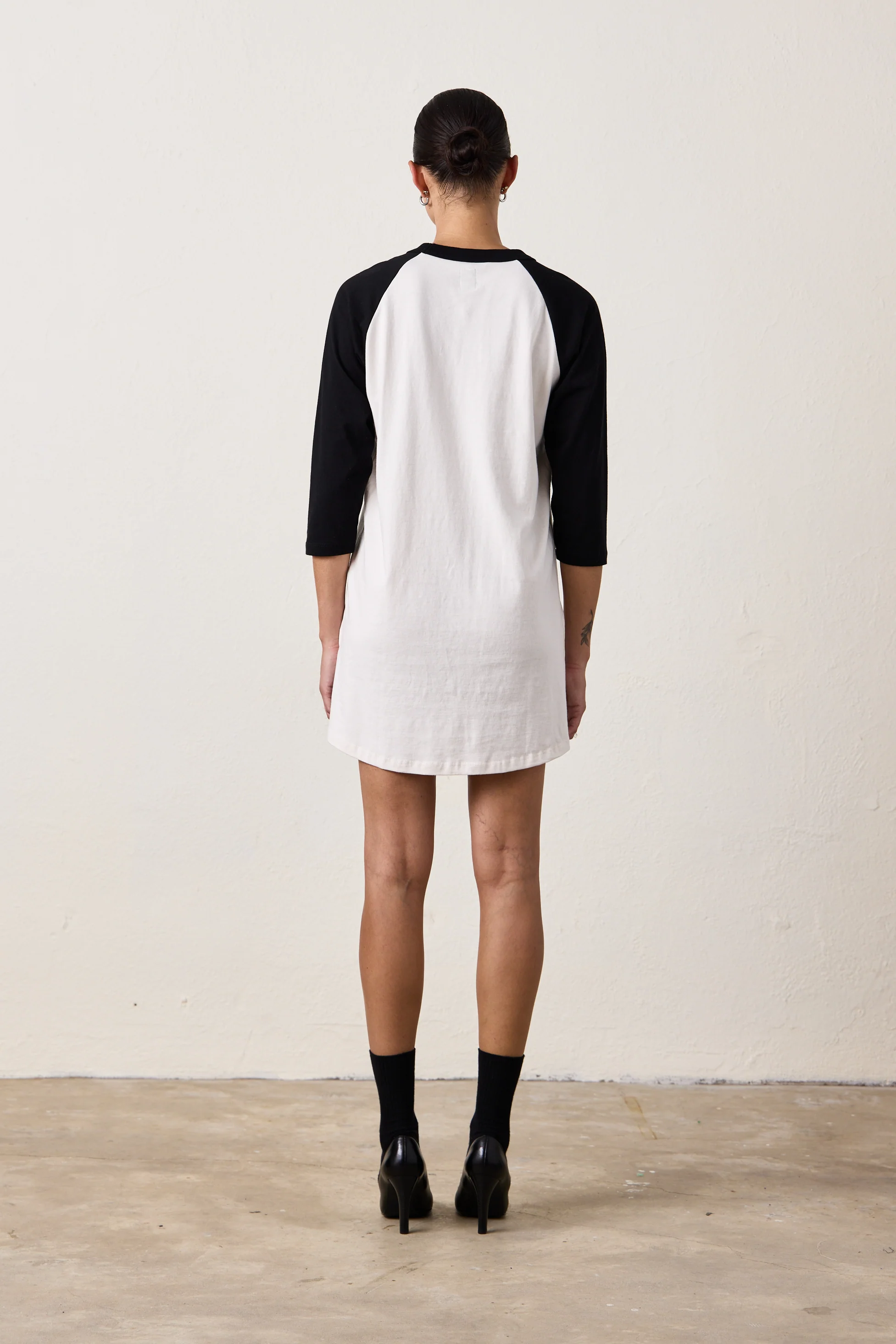 FRANKLIN BASEBALL JERSEY TEE DRESS / IVORY/BLACK