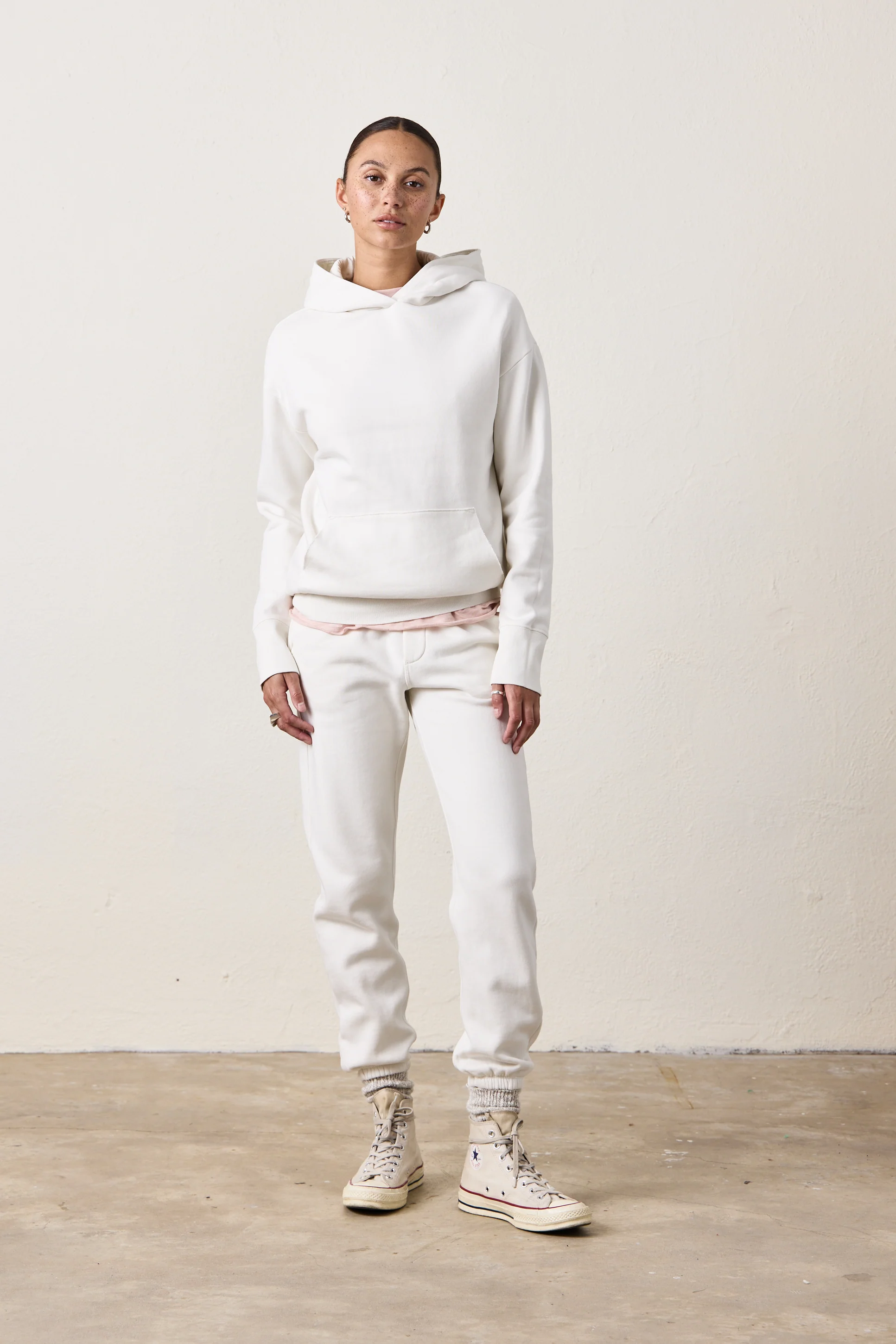ELLIS RELAXED COZY FLEECE HOODY / SOFT WHITE