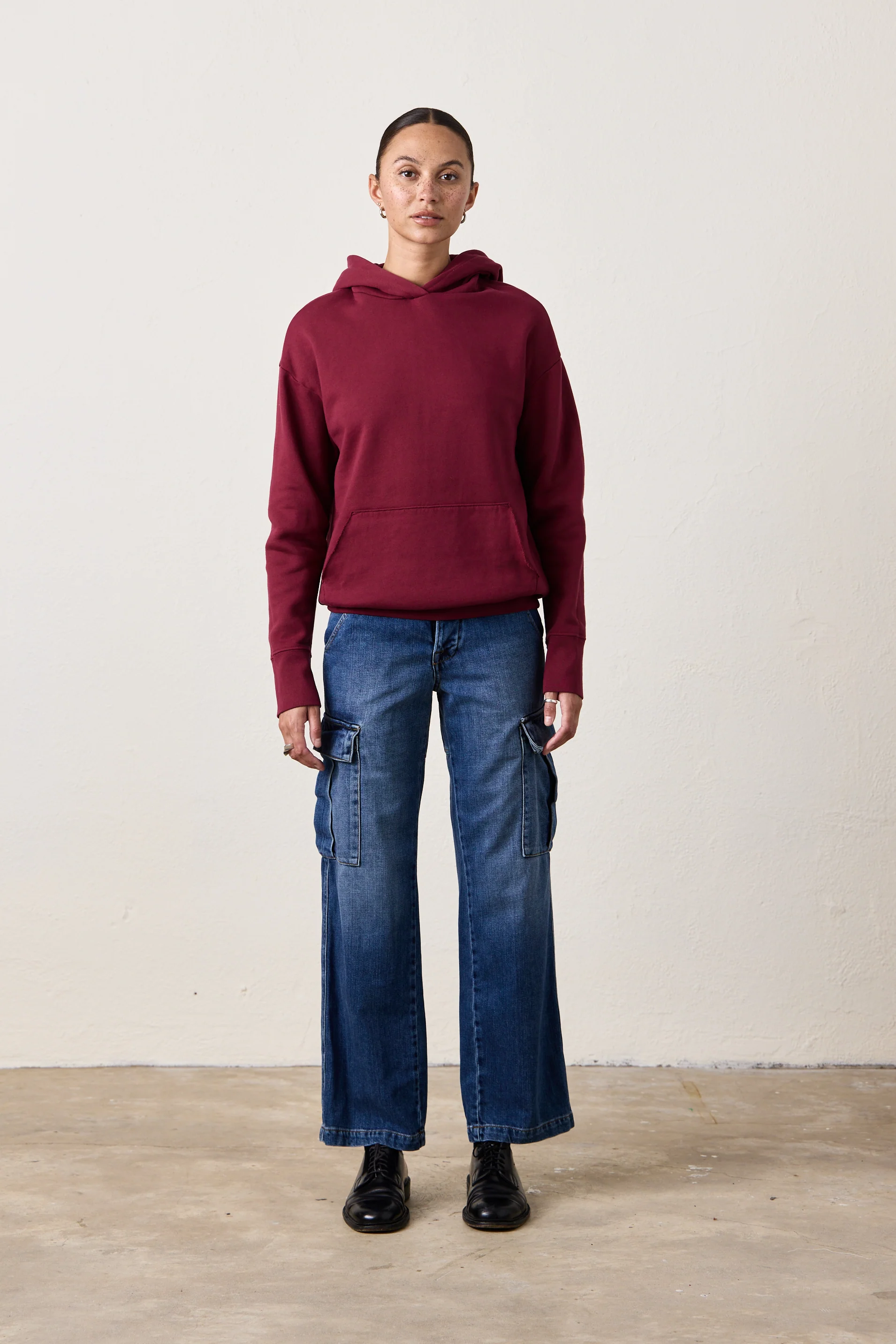 ELLIS RELAXED COZY FLEECE HOODY / DARK CHERRY