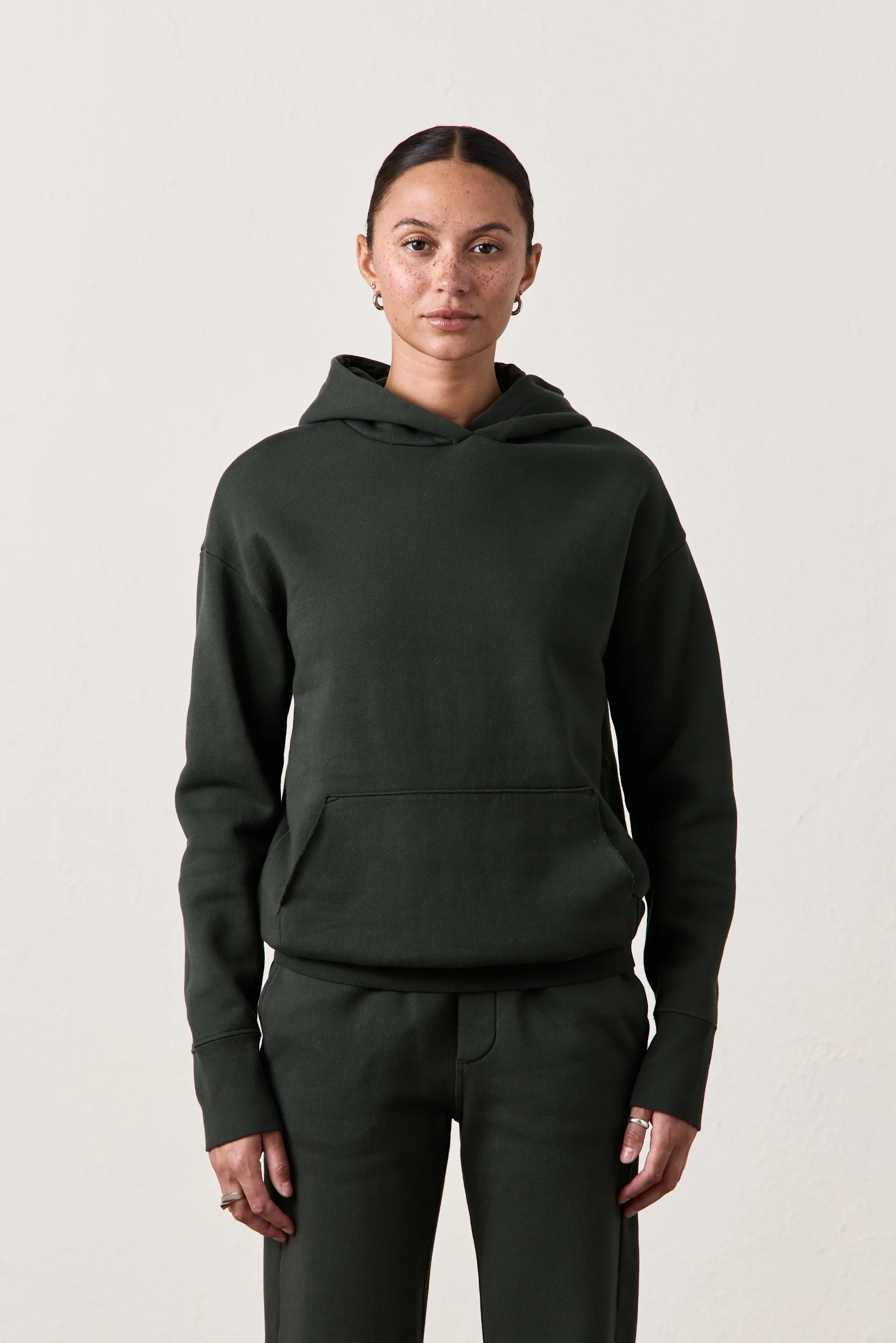 ELLIS RELAXED COZY FLEECE HOODY / DARK OLIVE